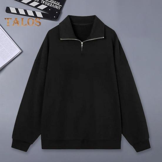 Стильные детали: Эта мужская толстовка с лацканами свободного кроя и застегивающимися на молнию лацканами создает непринужденный, но модный образ, который можно легко сочетать с повседневными брюками, джинсами или кроссовками, создавая непринужденный ансамбль.