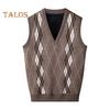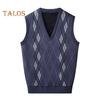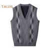 Мужской вязаный жилет с V-образным вырезом, без рукавов, утолщенная плюшевая подкладка, жилет с ромбическими узорами, зимний жилет, свитер