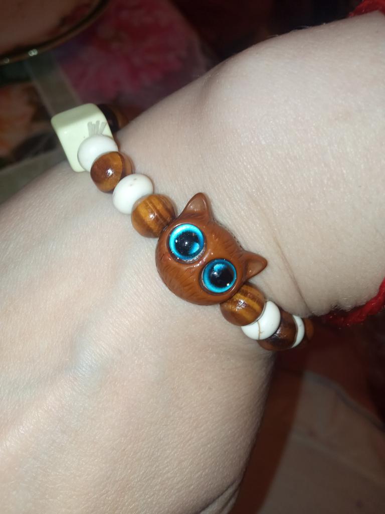 Очень миленький браслетик📿 с котиком🐈, хорошенький, больше детский, конечно, смотрится симпатично, тянется хорошо, без повреждений, продавцу спасибо🤗, рекомендую🥰