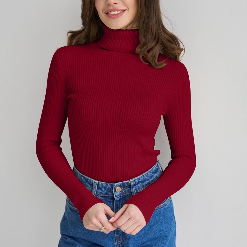 Женский однотонный свитер с высоким воротом и длинными рукавами, пуловер, вязаная верхняя футболка с подкладкой