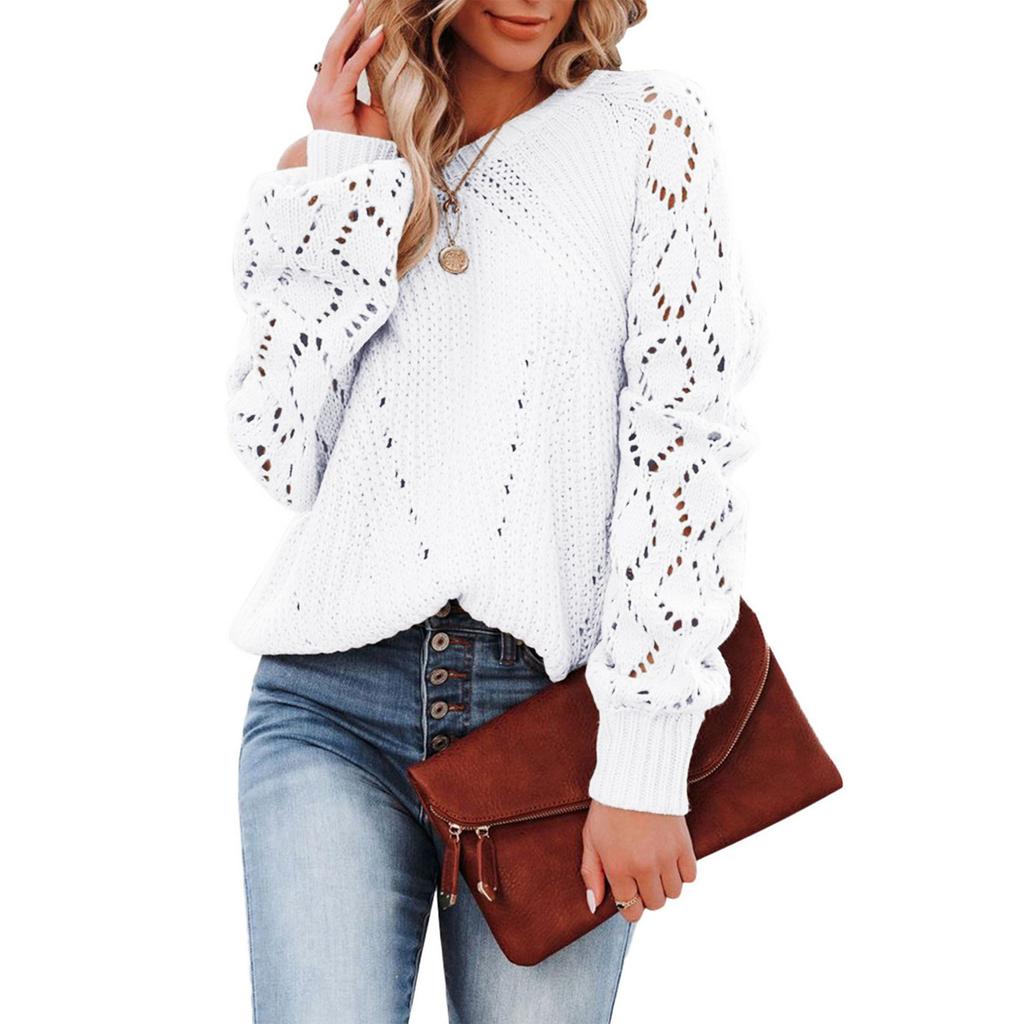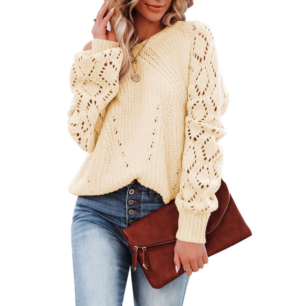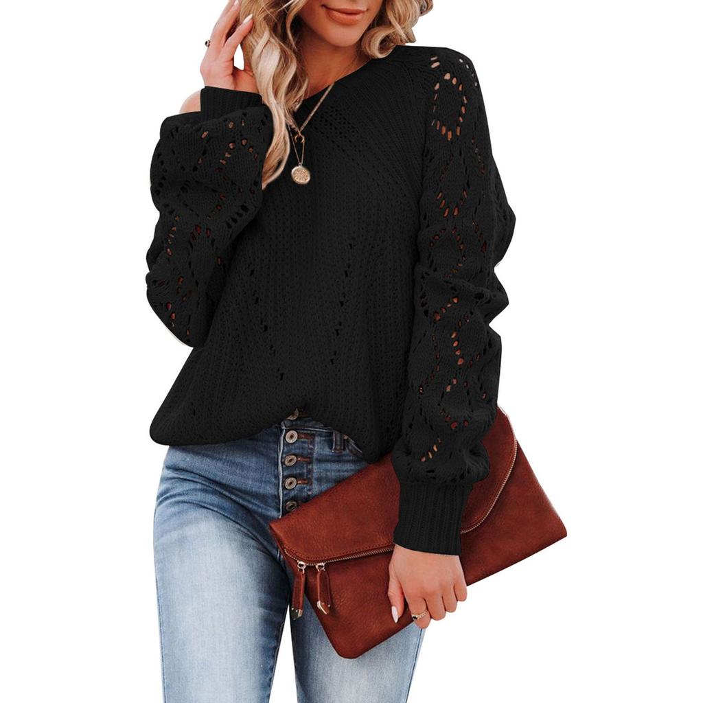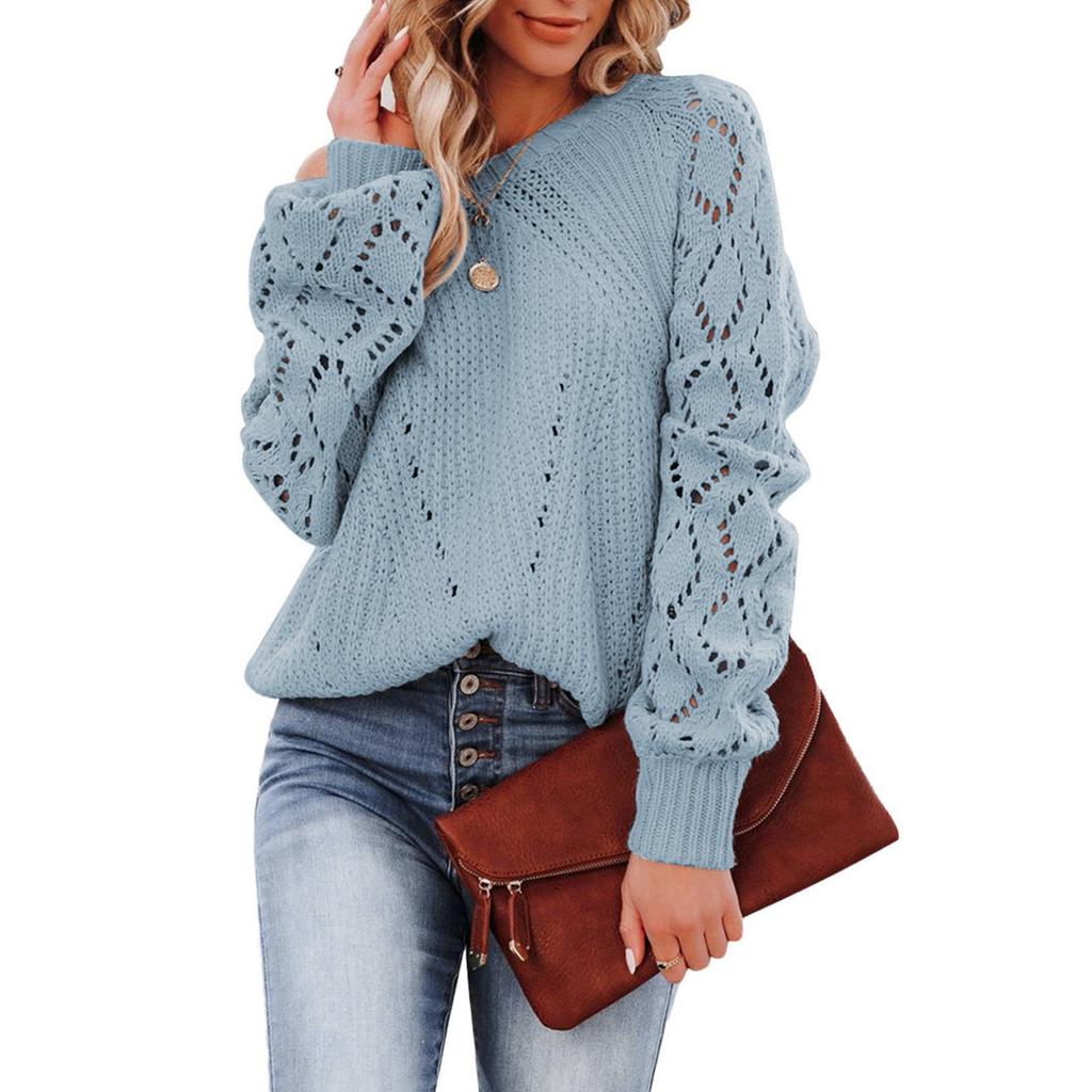 Женский осенне-зимний модный однотонный вязаный свитер с круглым вырезом и длинным рукавом