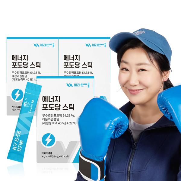 Vitamin Village Energy Glucose Vitamin C Stick Energy Drink 30 packets x 3 boxes, Korean health