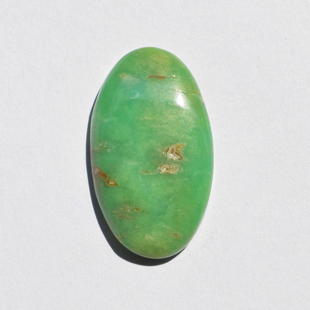Этот потрясающий кабошон из натурального драгоценного камня хризопраза — настоящая красота, которая украсит любое ювелирное украшение.. Яркий зеленый оттенок драгоценного камня хризопраз действительно завораживает, что делает его идеальным центром внимания для вашего следующего проекта своими руками.. Каждый кабошон тщательно обрабатывается вручную, чтобы продемонстрировать уникальные узоры и особенности натурального камня, гарантируя, что не будет двух абсолютно одинаковых.. Добавьте нотку естественной элегантности в ваши творения с помощью этого изысканного кабошона из драгоценного камня хризопраз.