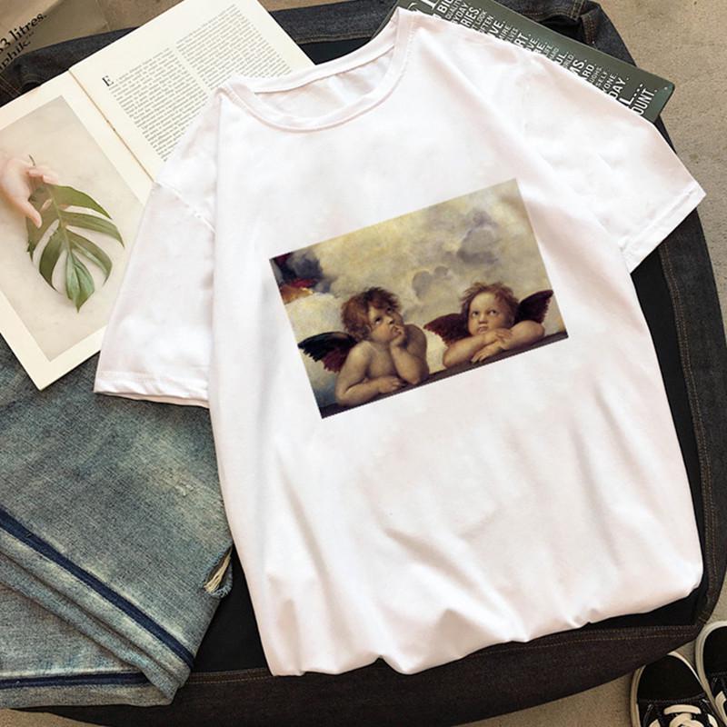 Милая картина маслом ангела с принтом, женская футболка, летняя мода, повседневная, забавная, Kawaii, женская, Harajuku