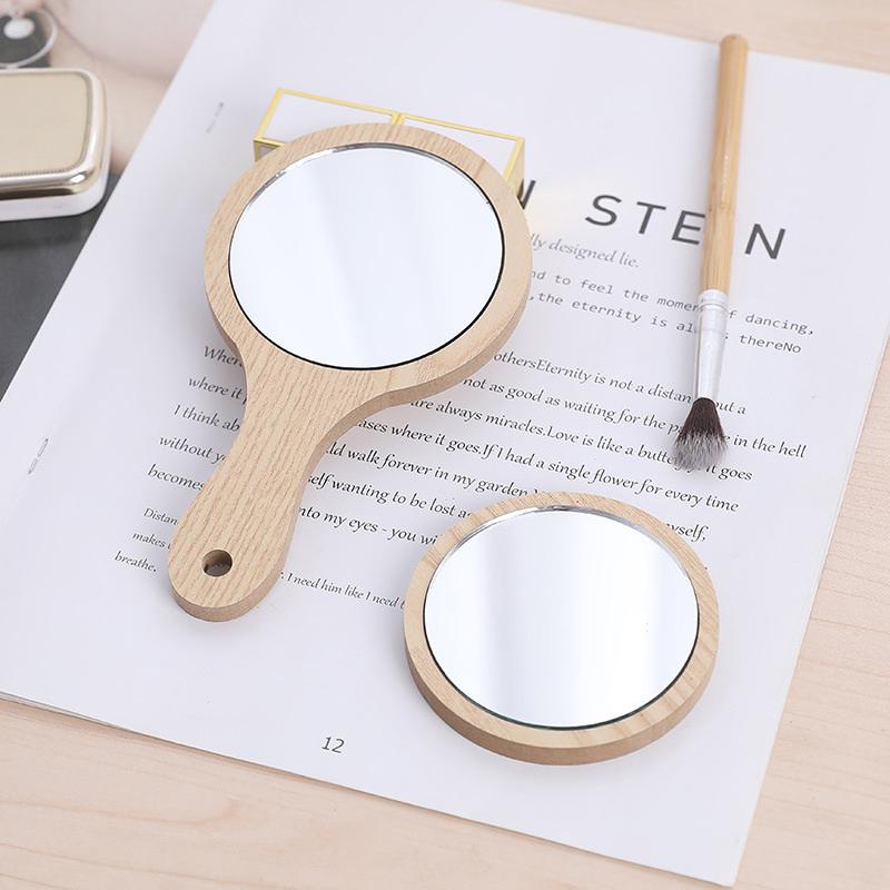Маленькое портативное деревянное зеркало для макияжа, круглое косметическое зеркало, карманное зеркало