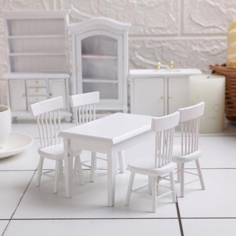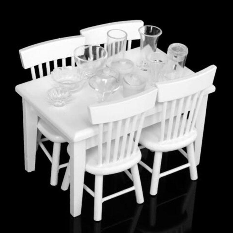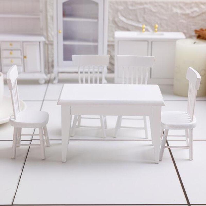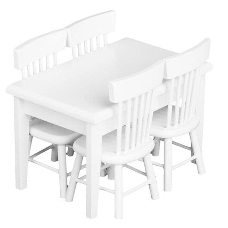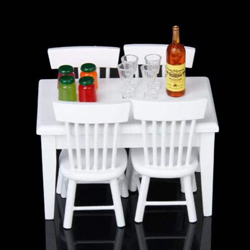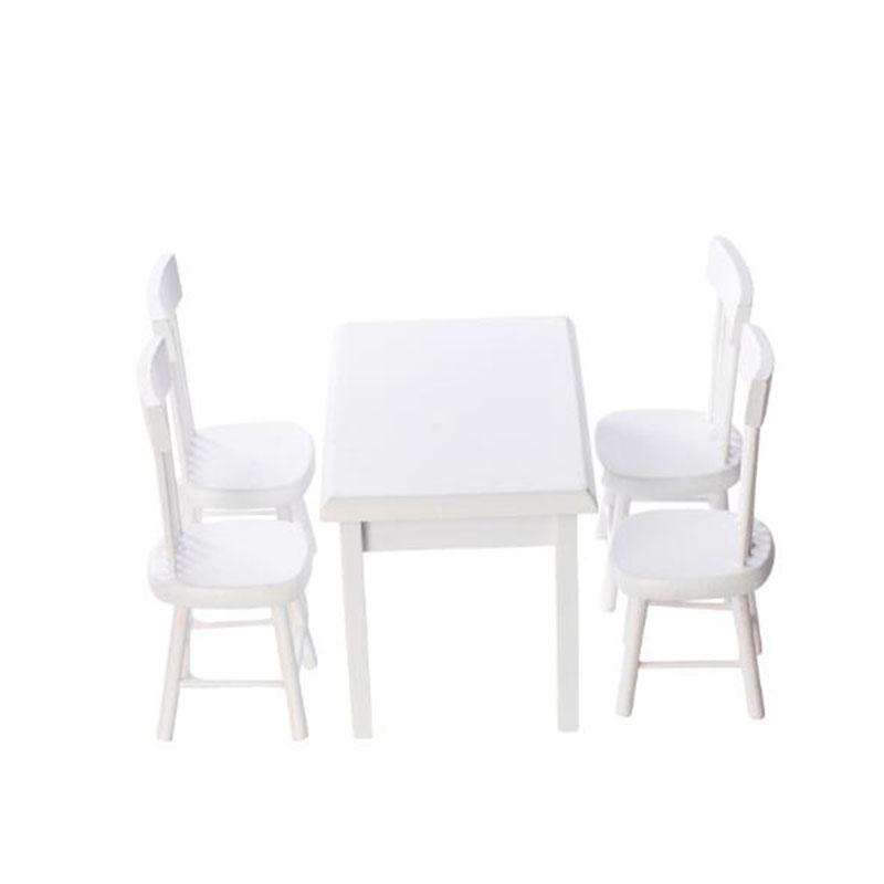 Этот набор моделей стульев для стола хорошо разработан и изготовлен для ваших детей, чтобы иметь лучшего домашнего компаньона для игр на весь день.. Имитация большого стола с четырьмя стульями, каждый из которых имеет полую на спинке очень стильно и модно. Этот набор моделей столов является отличной миниатюрной мебелью для вашей гостиной кукольного домика и отличным украшением для вашей модели интерьера.