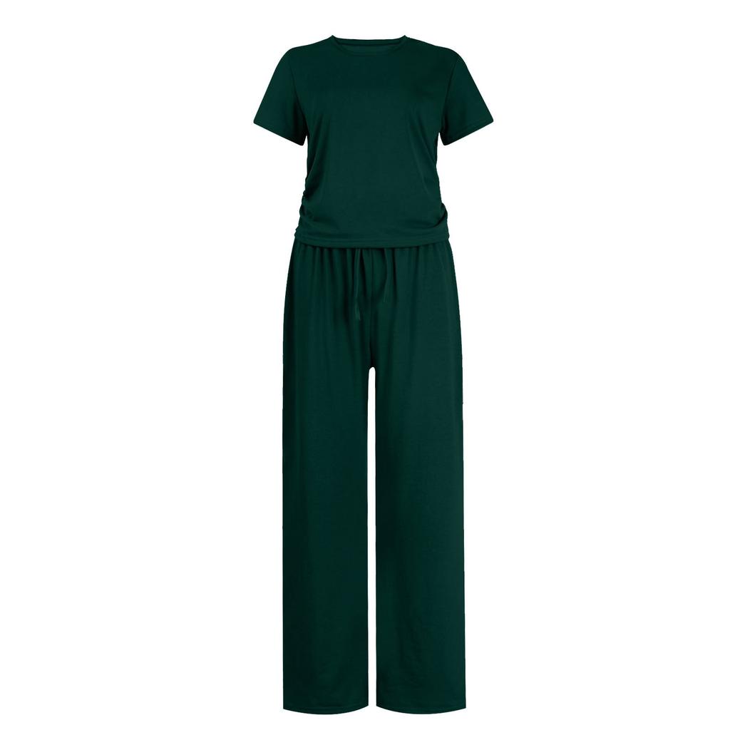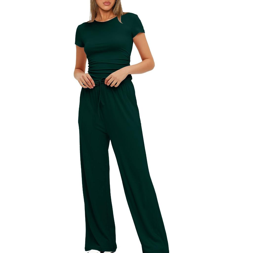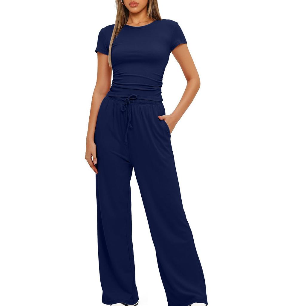 Женские комплекты из 2 предметов, летние топы с короткими рукавами и рюшами и широкие брюки, спортивный костюм, одинаковые наряды