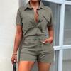 Женская однотонная рабочая одежда, топ с короткими рукавами, шорты на шнуровке, комплект из двух предметов