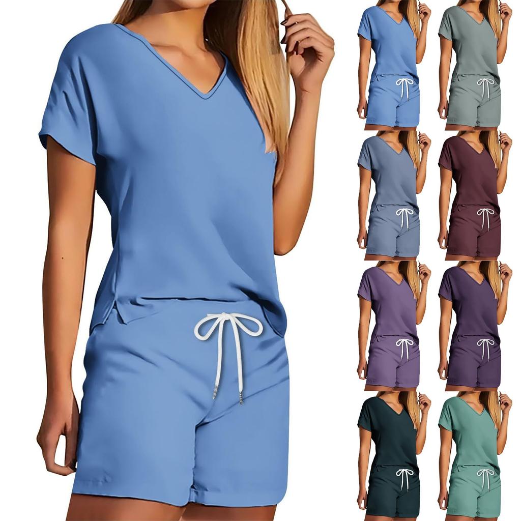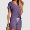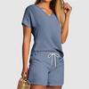 Женские комплекты футболок, футболок и шорт, повседневные комплекты с v-образным вырезом, стандартный крой, элегантные повседневные комплекты 2024, однотонные комплекты — купить товар онлайн с бесплатной доставкой до всему миру!