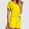 Женские комплекты футболок, футболок и шорт, повседневные комплекты с v-образным вырезом, стандартный крой, элегантные повседневные комплекты 2024, однотонные комплекты