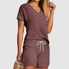 Женские комплекты футболок, футболок и шорт, повседневные комплекты с v-образным вырезом, стандартный крой, элегантные повседневные комплекты 2024, однотонные комплекты — купить товар онлайн с бесплатной доставкой до всему миру!