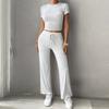 Летний темпераментный однотонный повседневный модный комплект с круглым вырезом — купить товар онлайн с бесплатной доставкой по всему миру!