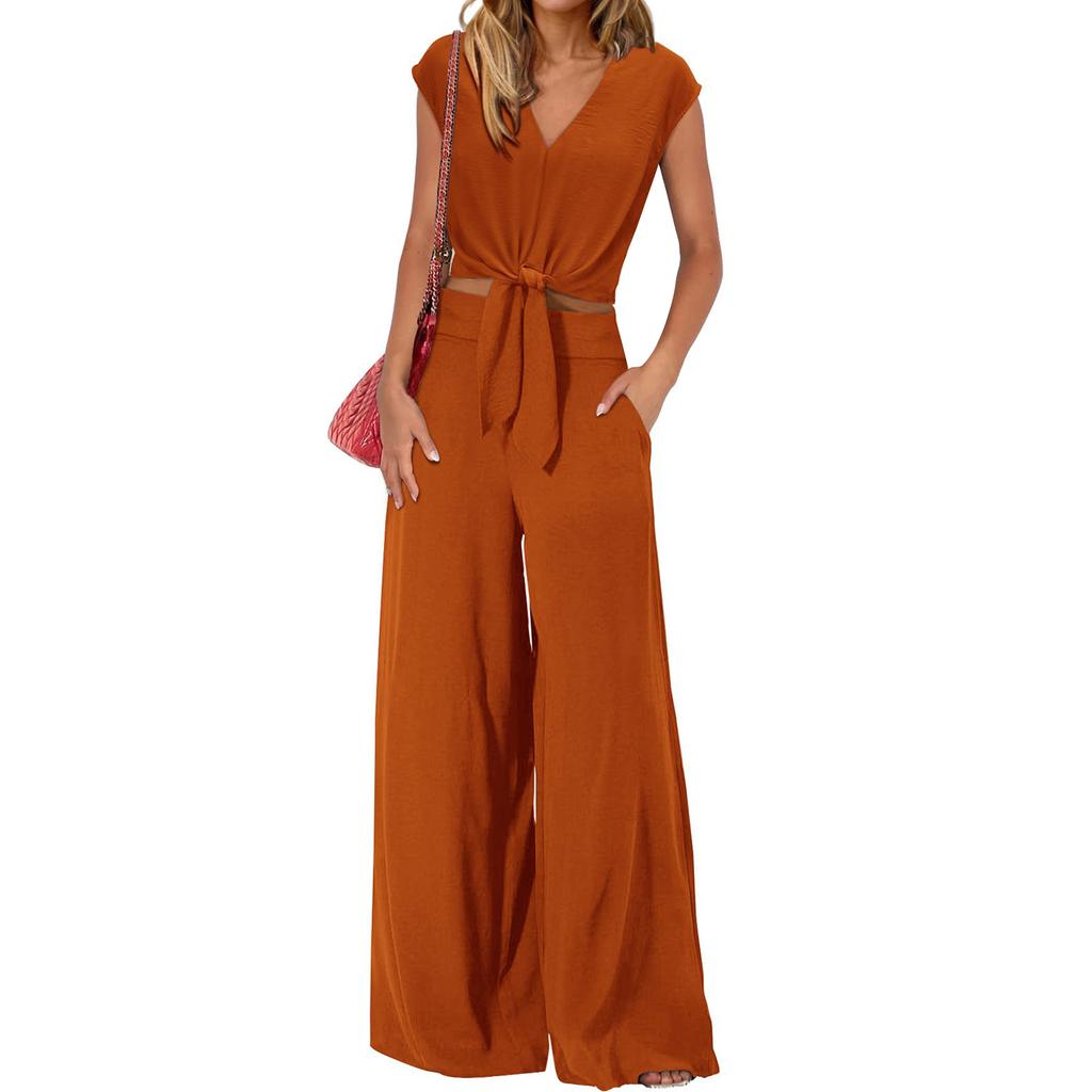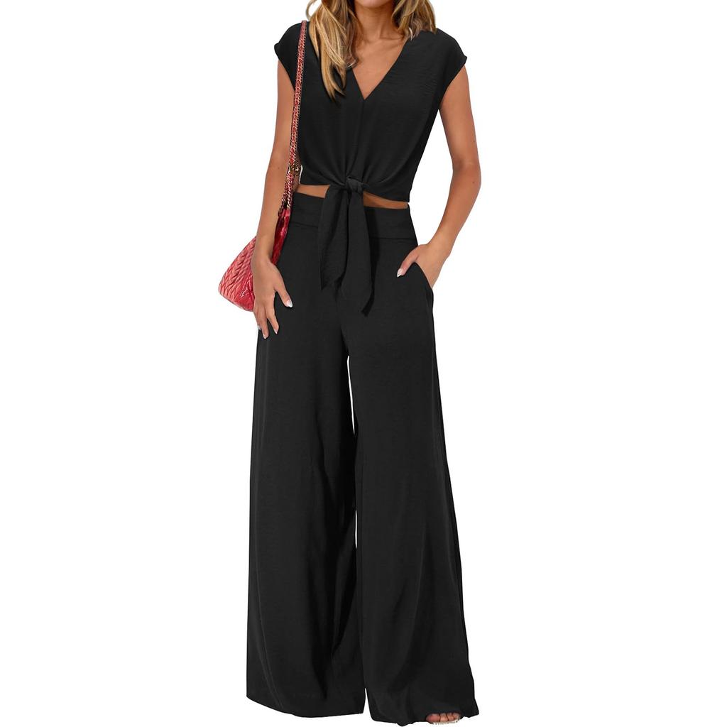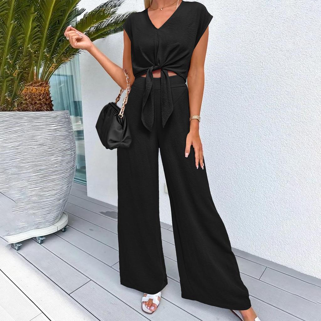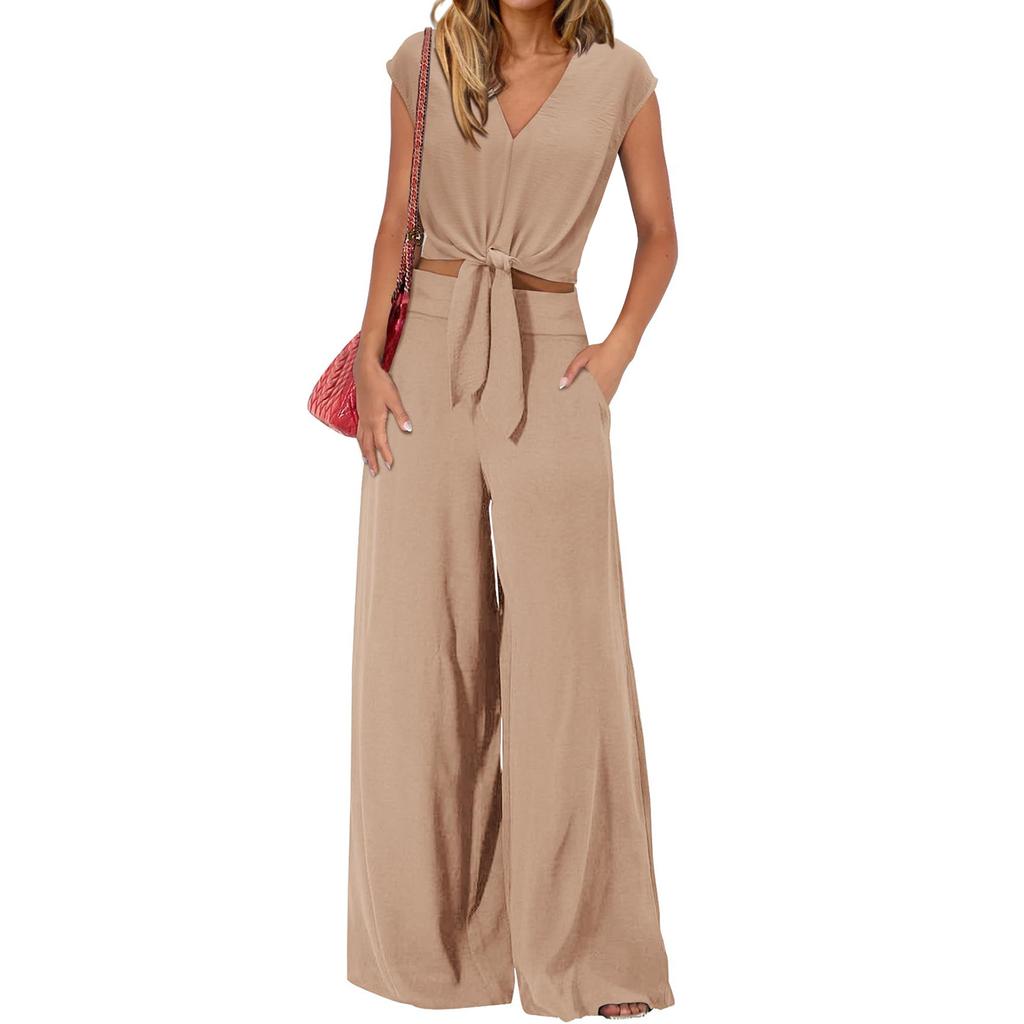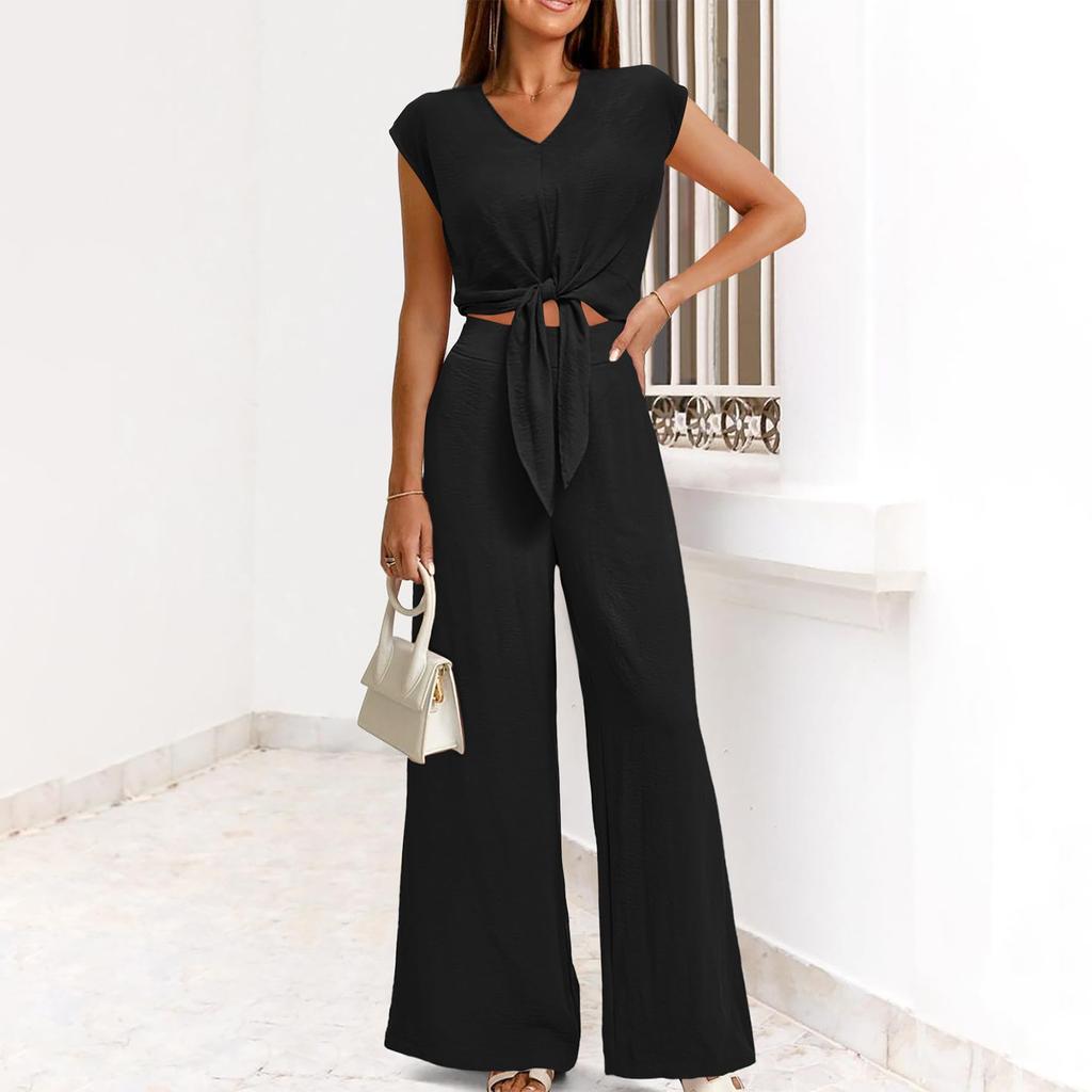 Женский костюм-двойка в тон: Черный струящийся брючный костюм/коричнево-оранжевый женский спортивный костюм/женский темно-синий повседневный костюм/женский ночной комплект из 2 предметов/хаки женский широкий брючный костюм из двух частей/женский светло-зеленый отпускной костюм/костюм из двух частей и брючный костюм палаццо/летние каникулы без рукавов костюм/женский клубный костюм