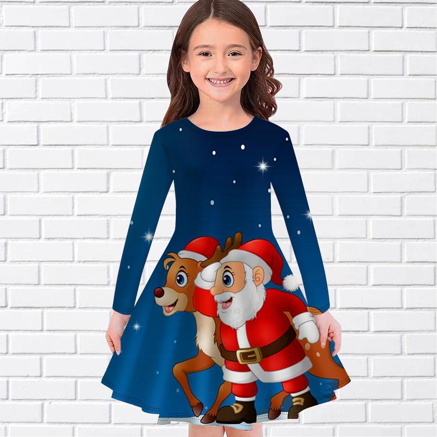 Повседневное платье для девочек с принтом на Рождество и доставкой на дом, с круглым вырезом и длинными рукавами, детское платье принцессы