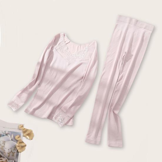 1 комплект женского термобелья, осенне-зимний кружевной V-образный вырез, длинный рукав, рубашка, длинные брюки