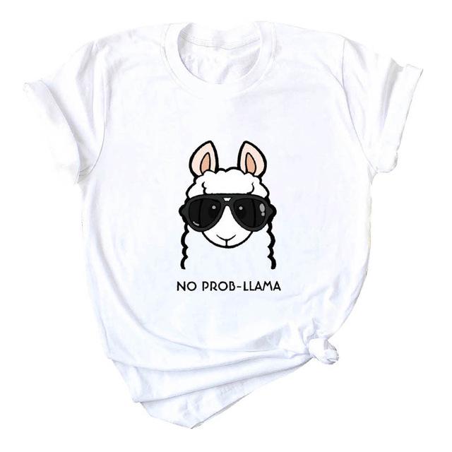 Летняя футболка женская футболка No Prob Llama с принтом головы мультяшного персонажа, короткий рукав, хлопок, повседневная — купить товар онлайн с бесплатной доставкой по всему миру!