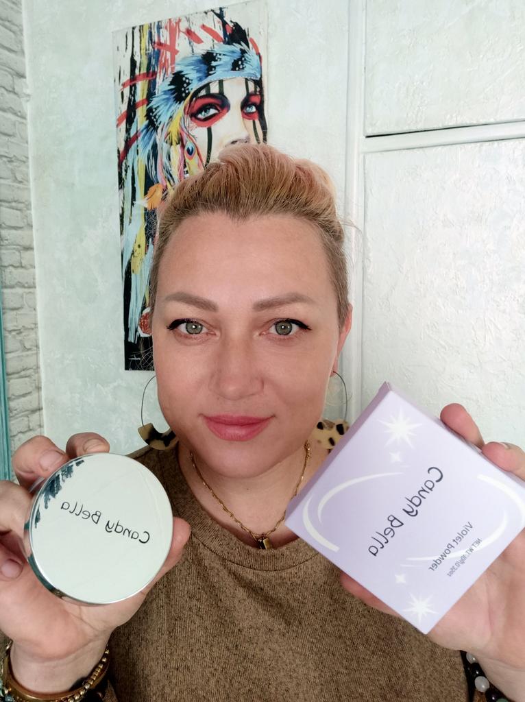 🟣ВОДОСТОЙКАЯ ПУДРА ДЛЯ . ФИКСАЦИИ МАКИЯЖА 🟣Пудра упакована в стильную коробочку с надписью "CANDY BELLA" с красивым дизайном.Коробочка приходит заслюдированная 🟣Сама пудреница выполнена в зеркальном исполнении,что делает ее́ стильной и элегантной.Крышка у пудреницы выглядит как полноценное зеркало,без искажений и расплывчатости. Крышка закрывается плотно.Внутри имеется достаточно большое зеркальце и спонжик в красивом фиолетовом цвете. . 🟣ТЕКСТУРА: 🟣Пудра имеет супер-мягкую текстуру,похожую на воск.Несмотря на свой фиолетовый оттенок,пудра является бесцветной и на коже ее́ не видно.Она легко распределяется по коже,не утяжеляя ее́,и при этом обладает хорошими матирующими свойствами. . 🟣ЭФФЕКТ: 🟣Пудра прекрасно матирует кожу,оставляя ее́ гладкой,без жирного блеска и шелковистой на долгое время.Так же она создае́т эффект фотошопа,сглаживает неровности,скрывает поры,улучшает текстуру кожи и придает ей естественное сияние.Кожа выглядит сияющей и ухоженной💜!. 🟣Пудру удобно брать с собой.Поместится в любую сумочку и не займет много места . ✔️Срок годности:3 года . ✔️Вес:10 г . ✔️Страна производитель . Китай 🟣Пудра мне понравилась👍! Рекомендую! 🟣Если вы хотите более подробный обзор с отзывом и видео,то смотрите его у Наденьки Мироновой.Спасибо Вам Наденька за такой полезный и подробный обзор на эту классную 👍 пудру!💙 🟣Спасибо продавцу и Joom🩵! . 🛩️Доставка в Москву 1 месяц+1 день в сборной посылке . 🛩️Отслеживание велось до почтового отделения