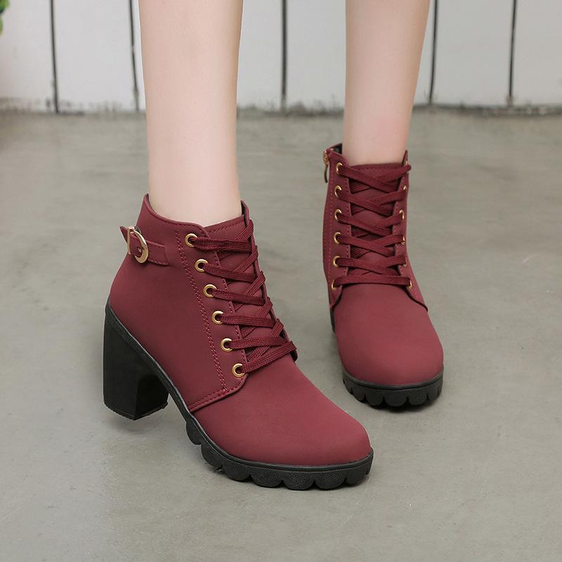 Женская обувь Женская мода Высокий каблук Ботильоны на шнуровке Женские туфли из искусственной кожи на платформе с пряжкой Ботинки размера плюс