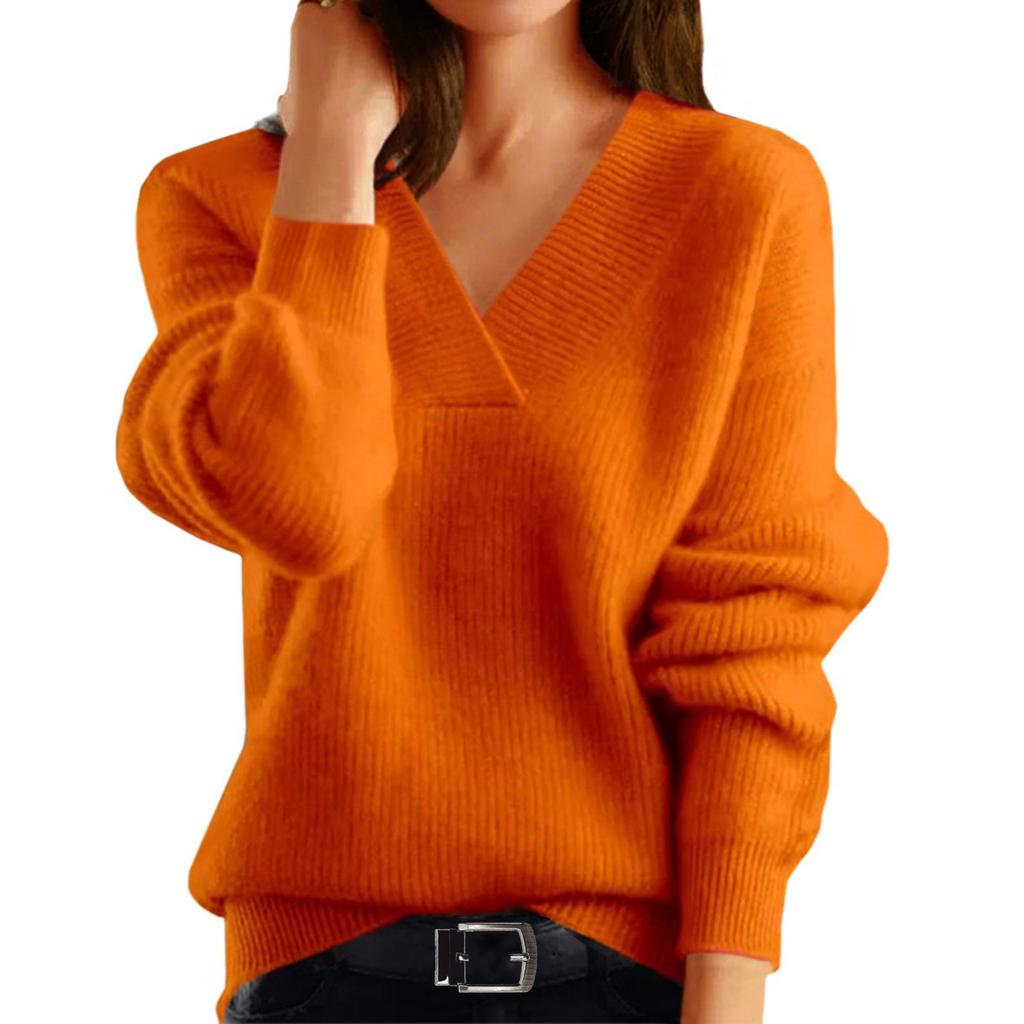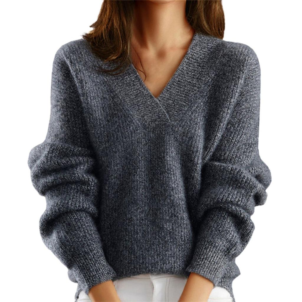 Женская мода V-образный вырез однотонный трикотажный низ рубашка длинный рукав пуловер топ свитер