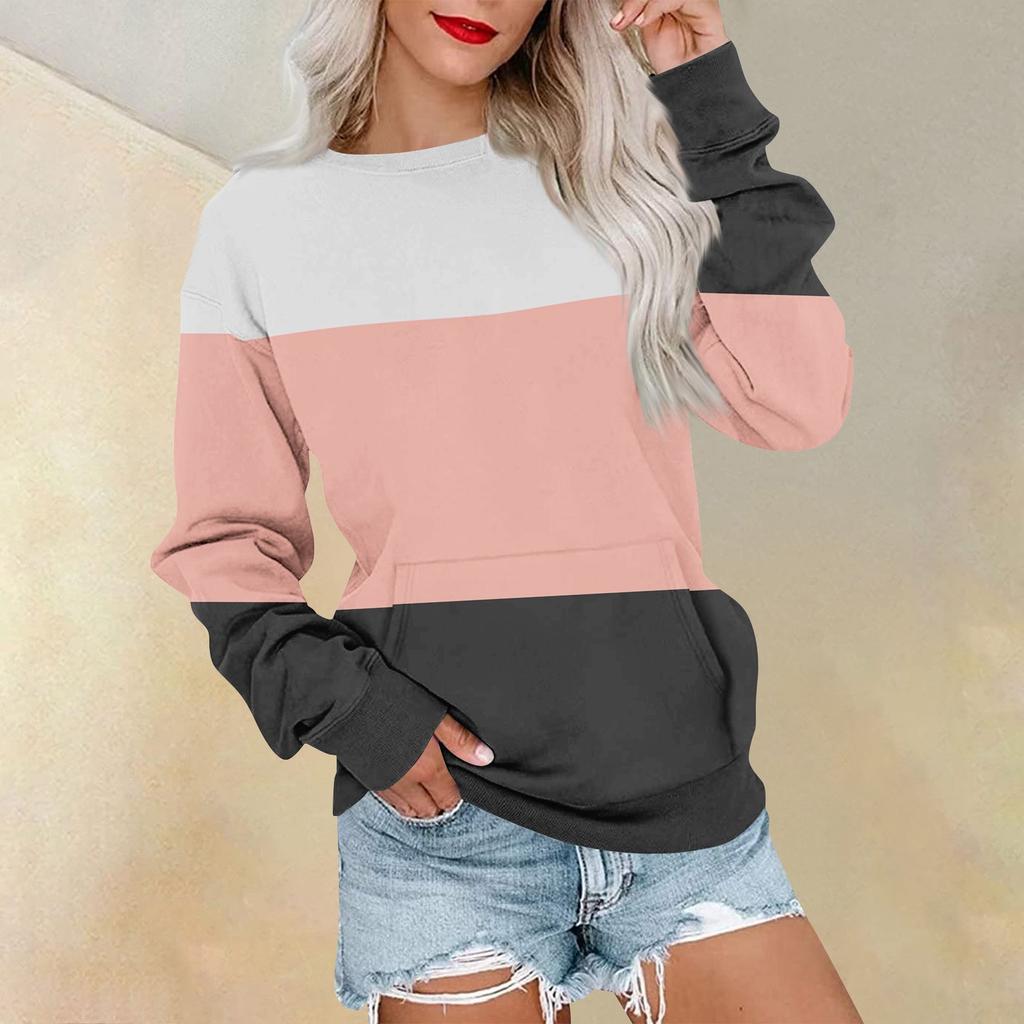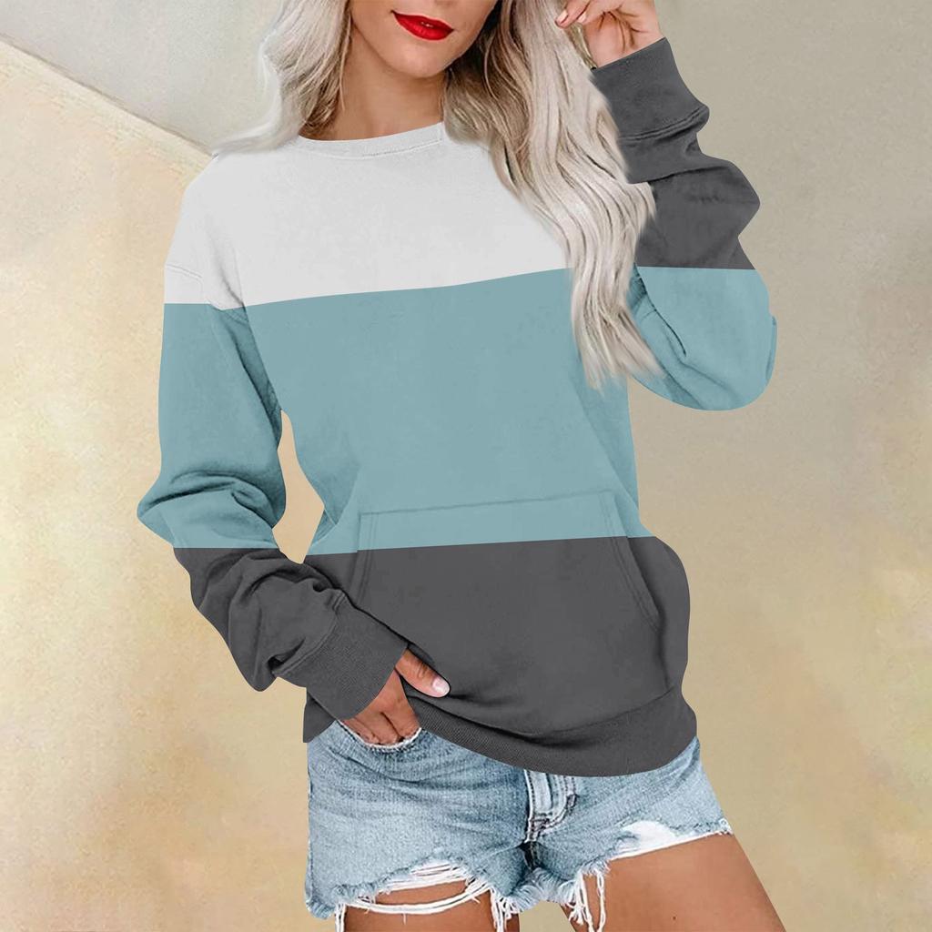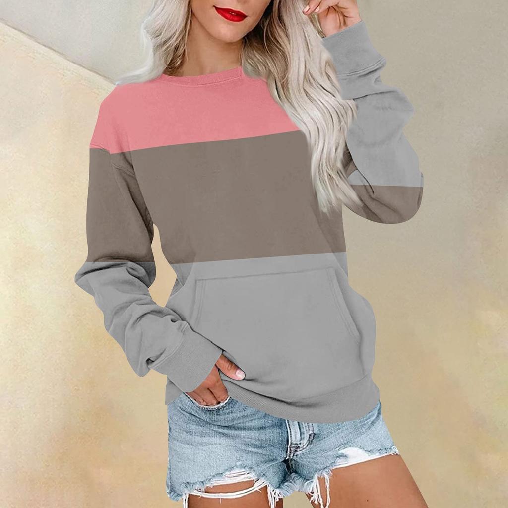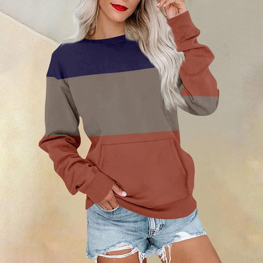 Женская модная повседневная блузка с длинным рукавом и круглым вырезом, цветной пуловер, топ, блузка