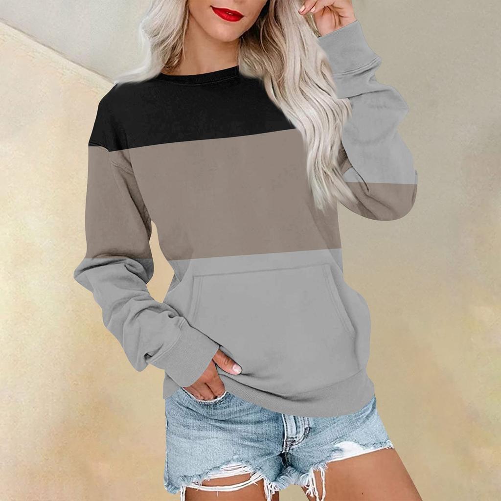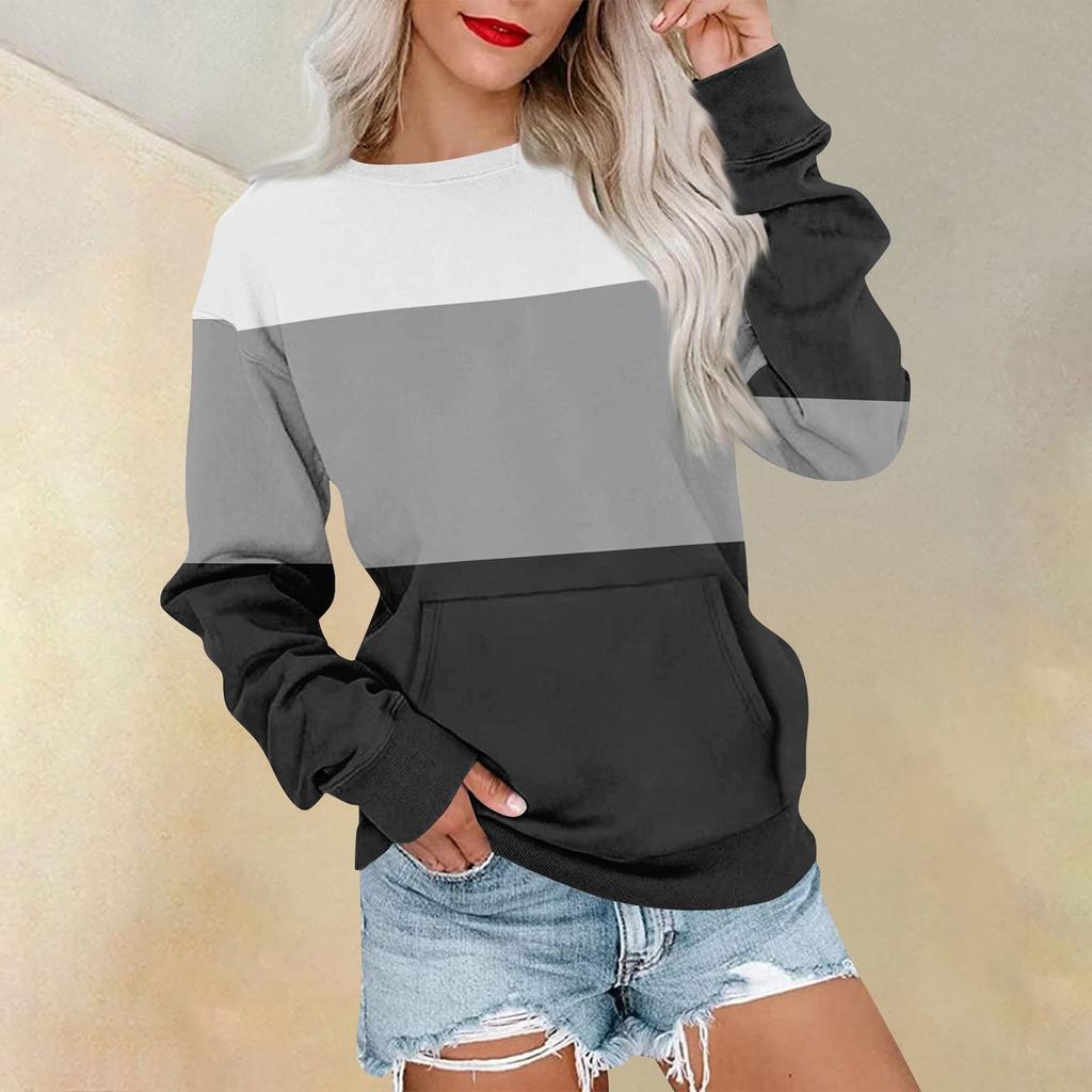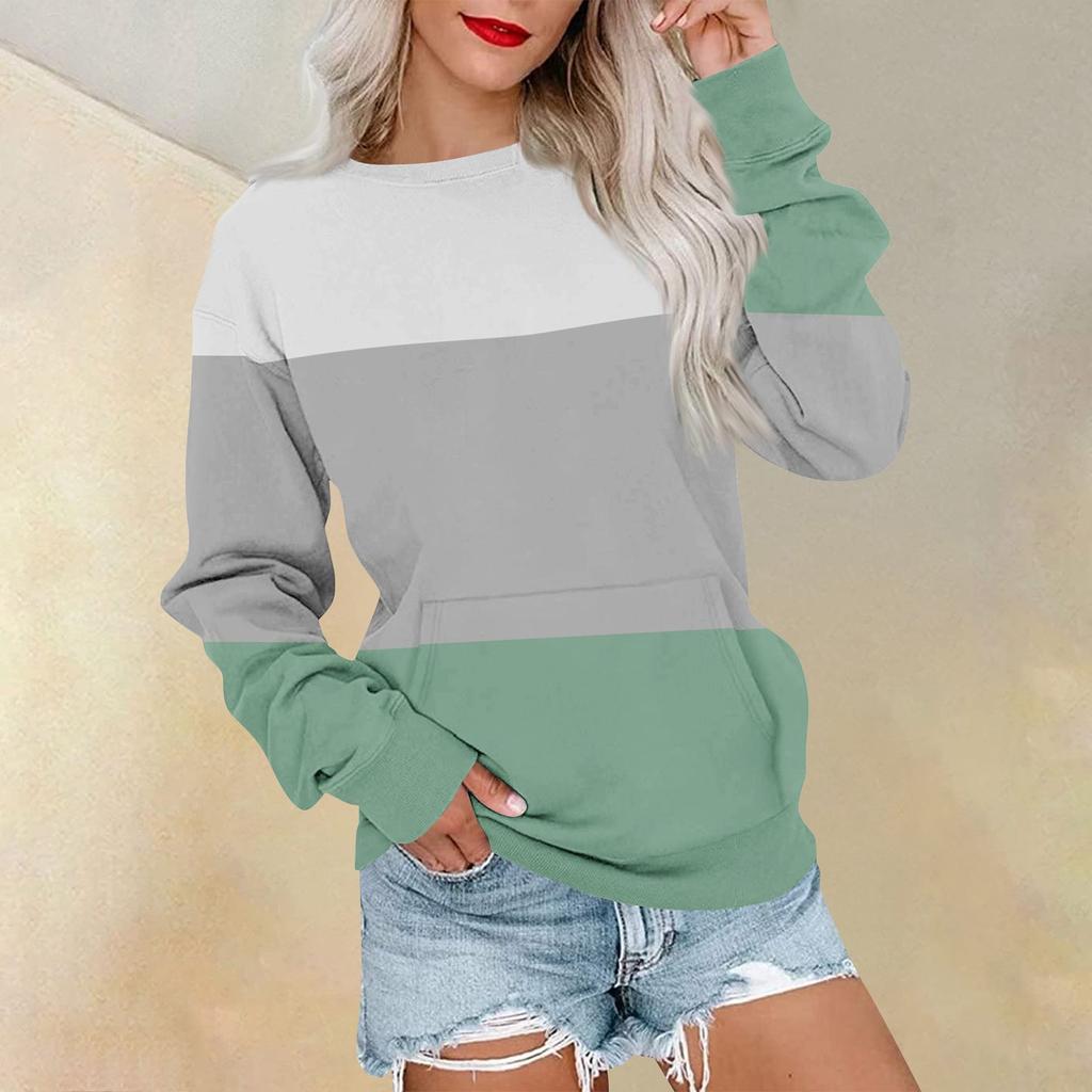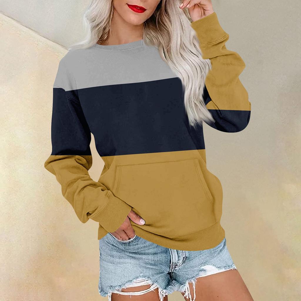 Женская модная повседневная блузка с длинным рукавом и круглым вырезом, цветной пуловер, топ, блузка