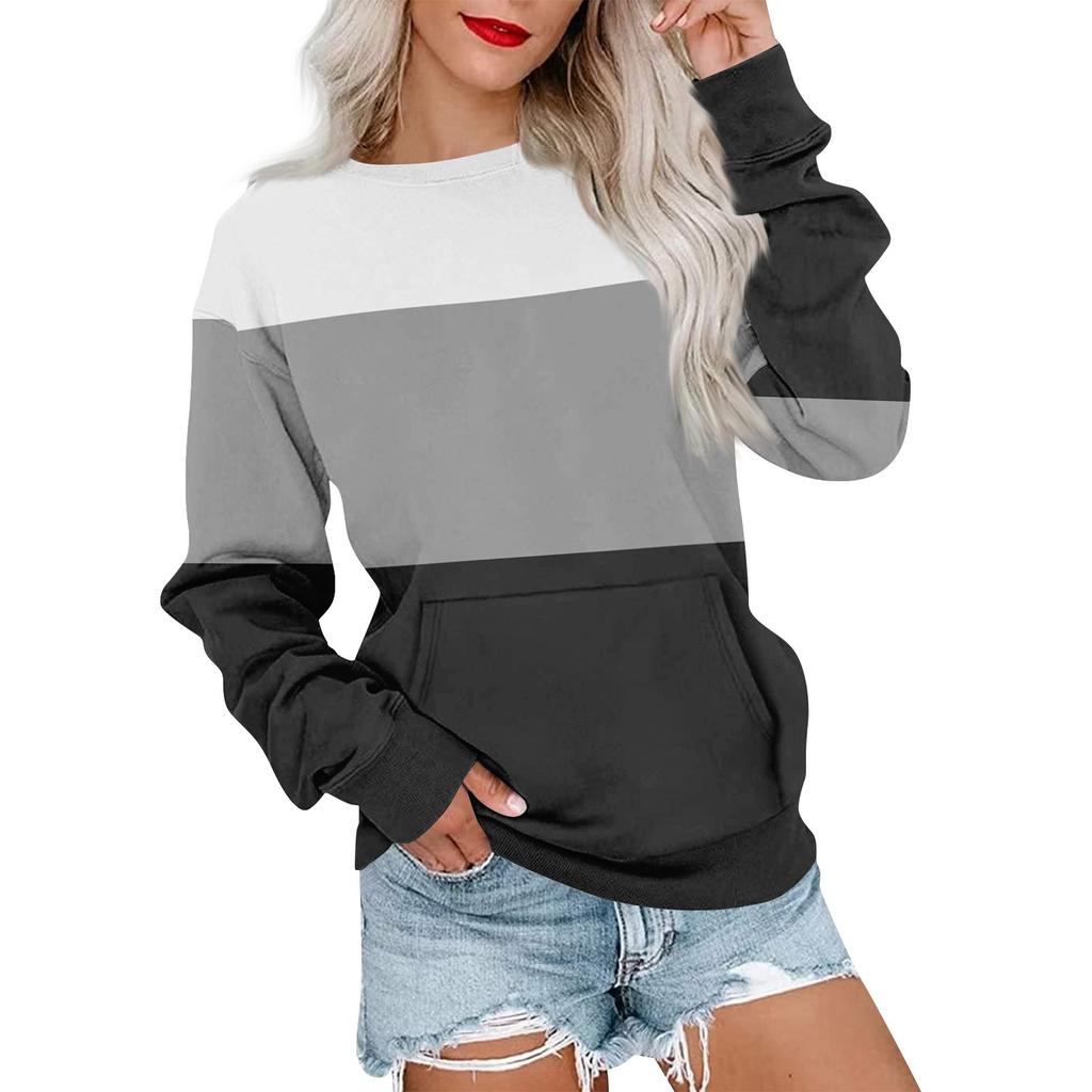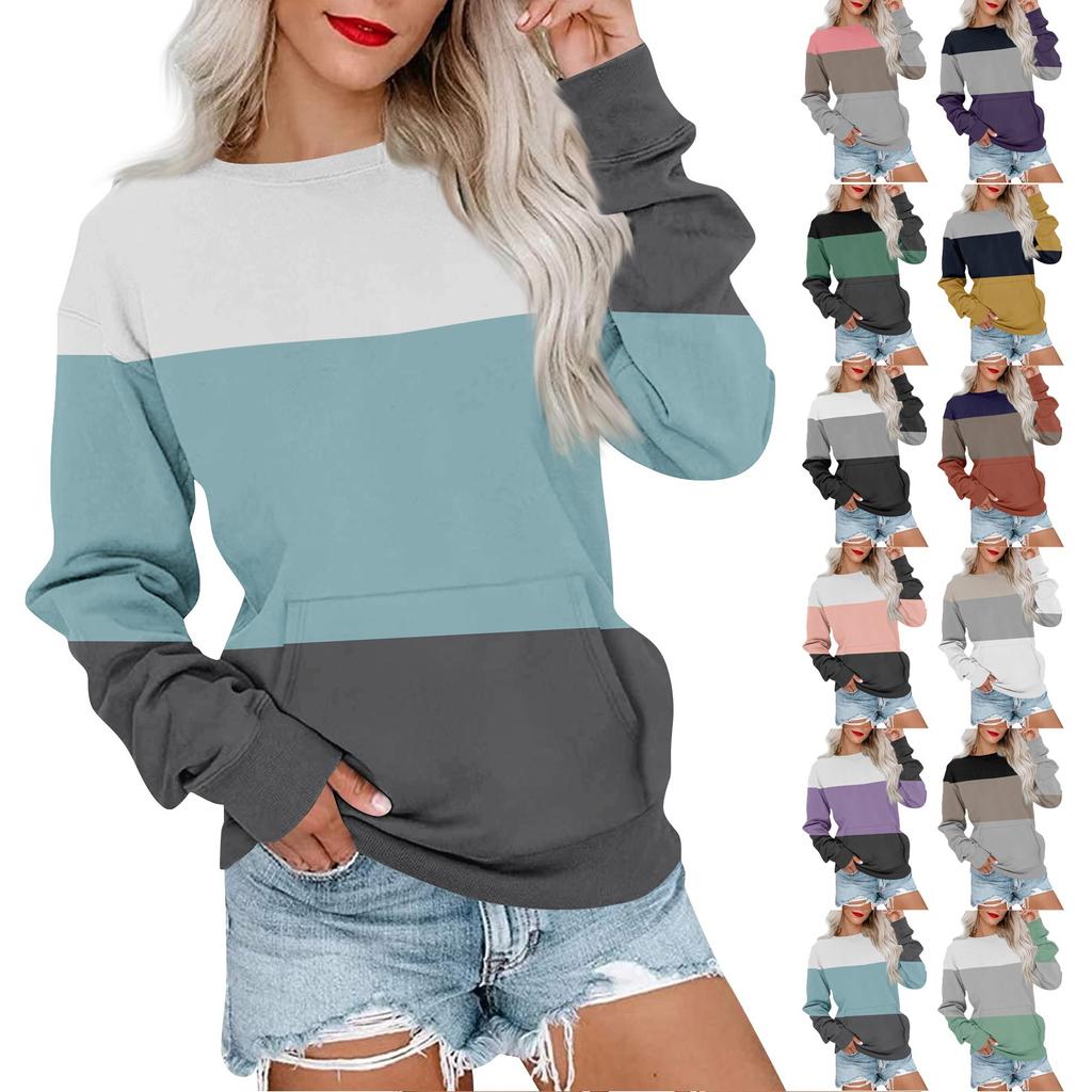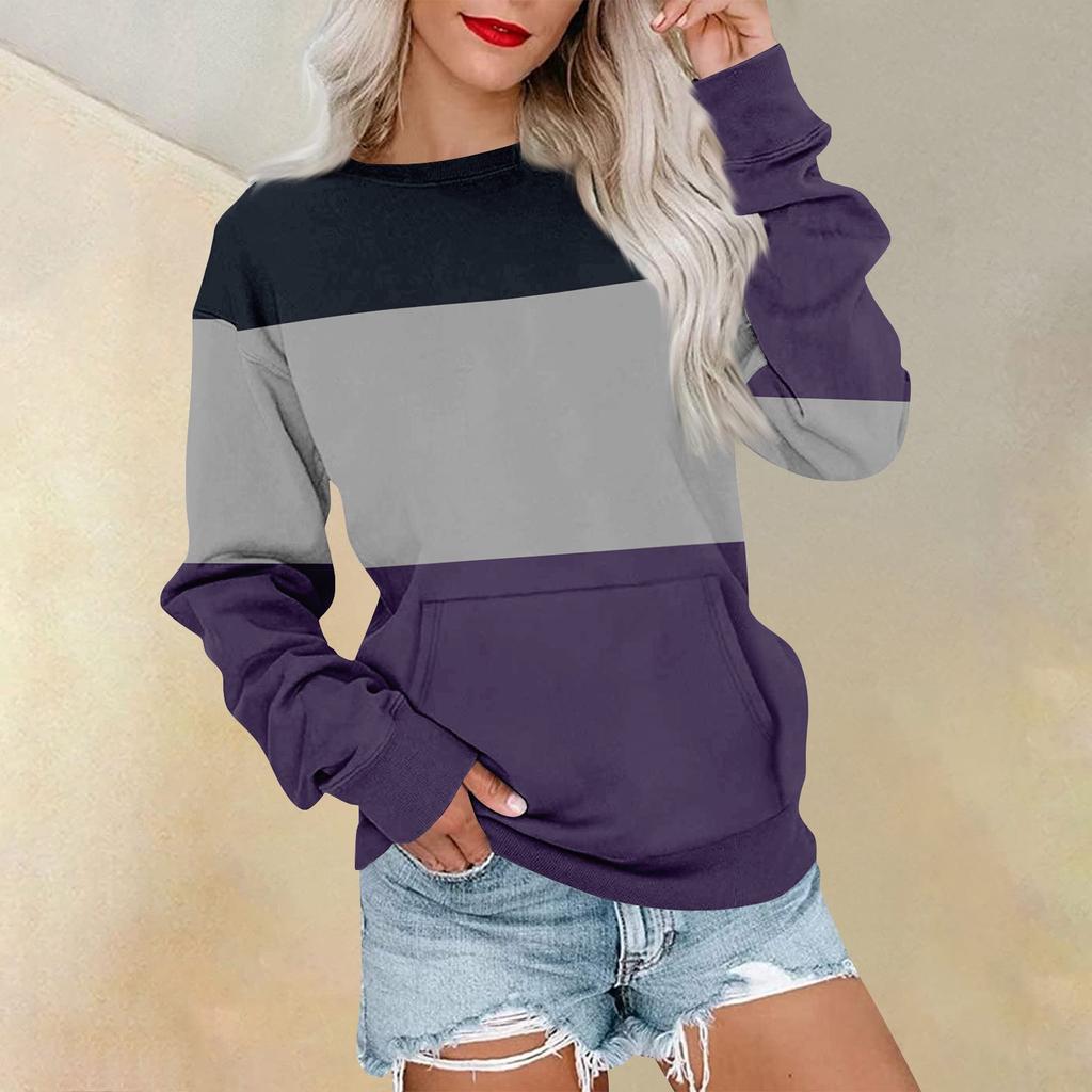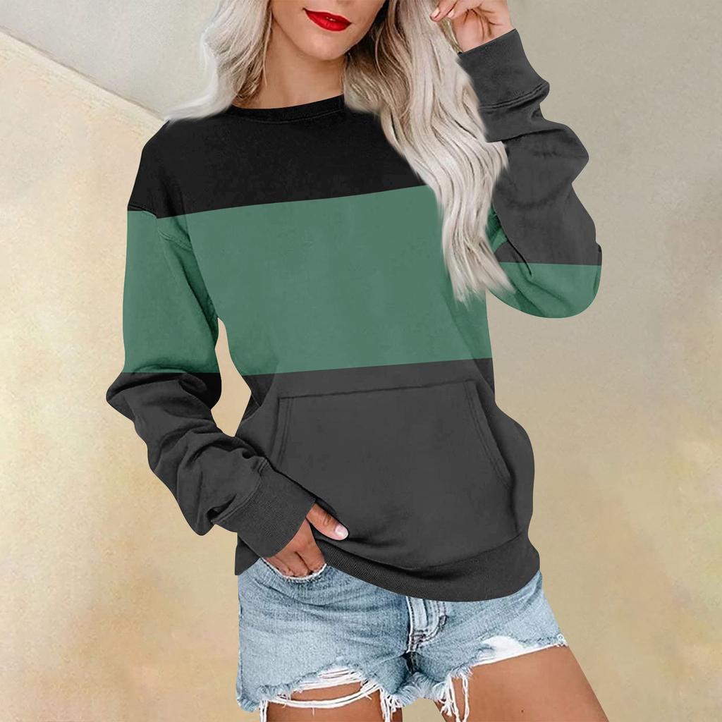 Женская модная повседневная блузка с длинным рукавом и круглым вырезом, цветной пуловер, топ, блузка