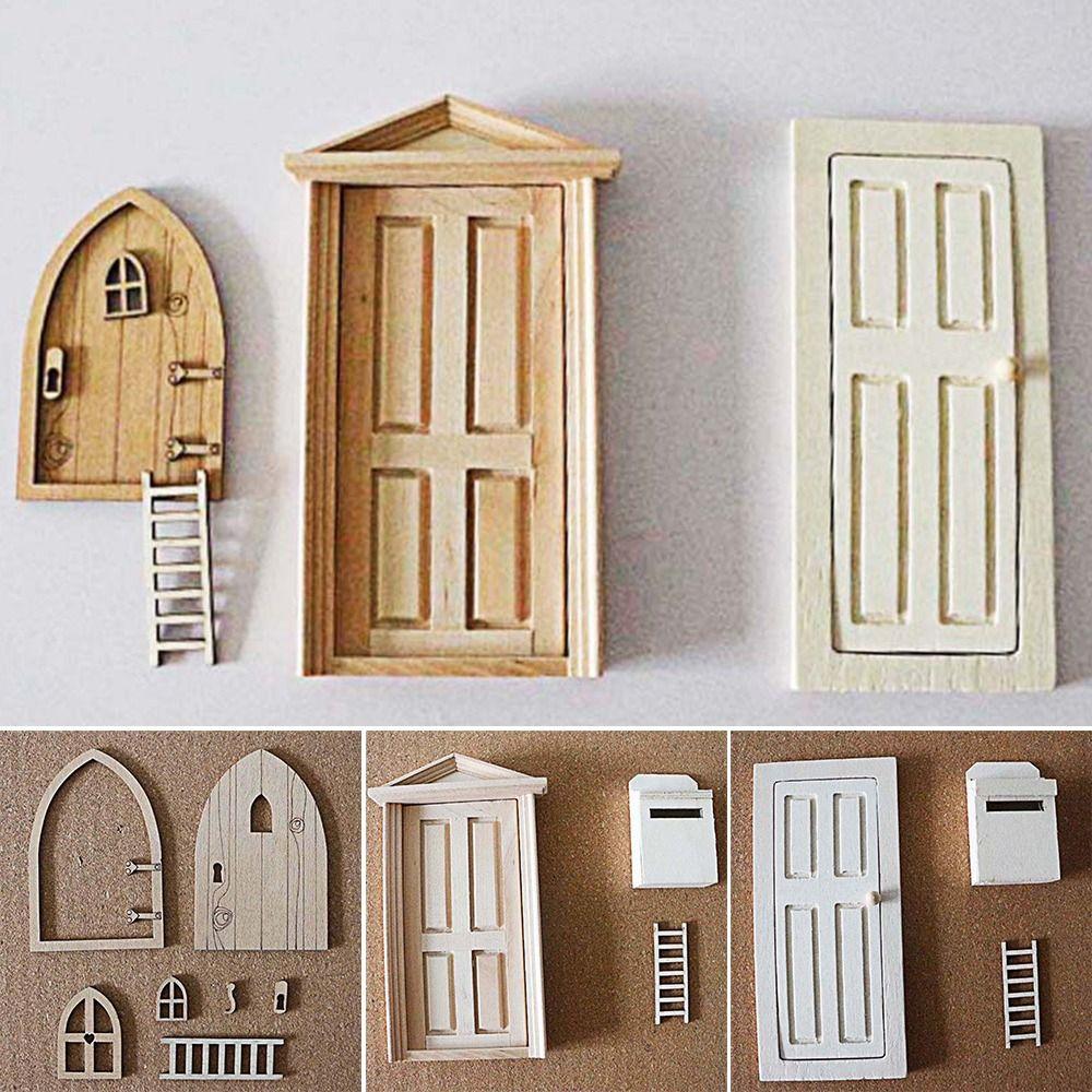 DIY Двойное Окно Деревянная Рама Кукольный Дом Окно Кукольная Мебель Двери Домашние Модели Украшения