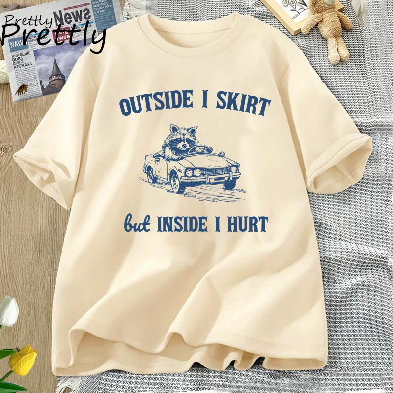 Снаружи я юбка, но внутри мне больно Футболка Забавный енот Странный мем Футболка Мусорная панда Хлопок Короткий рукав Женская одежда Футболки