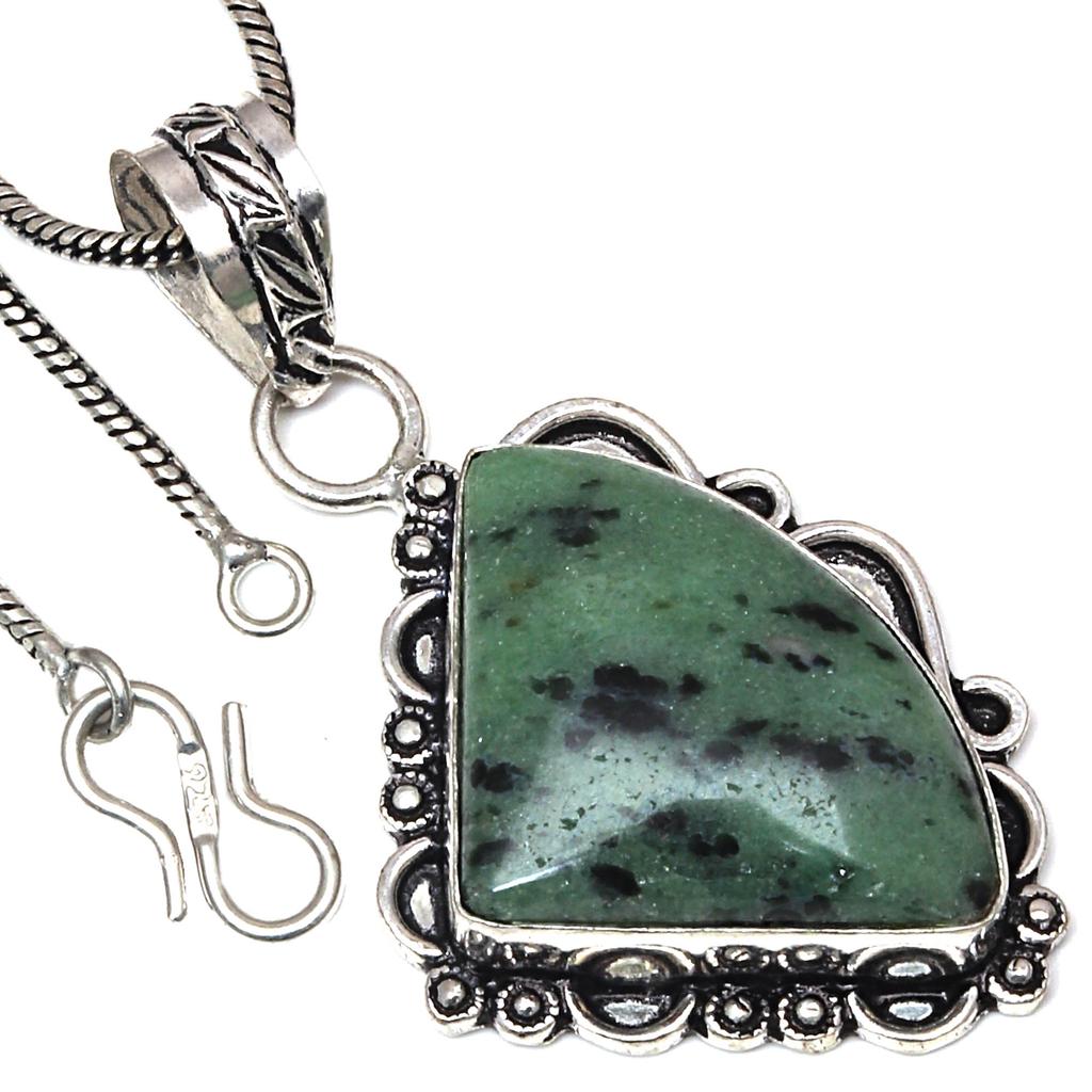 Подвеска Рубин Цоизит Драгоценный камень Ручной работы Подарок для нее Серебряные украшения 2"