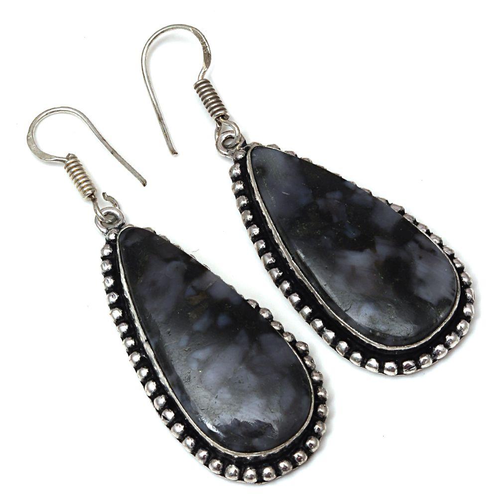 Серебряные серьги ручной работы из драгоценного камня Ларвикит Джаспер 1,5 дюйма