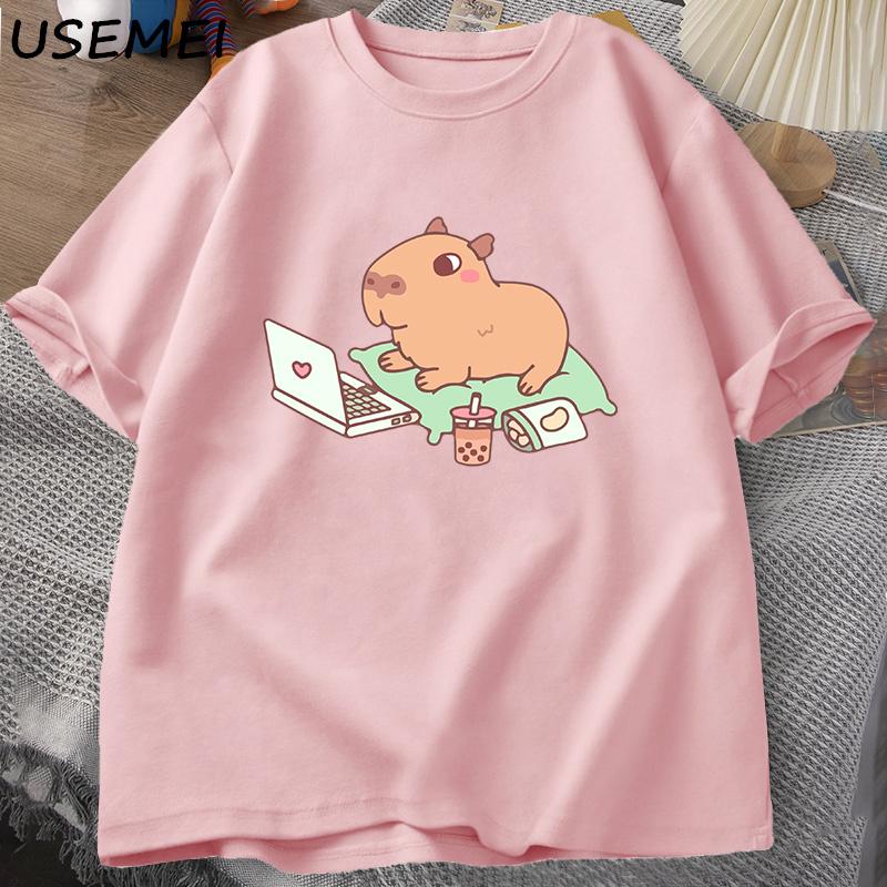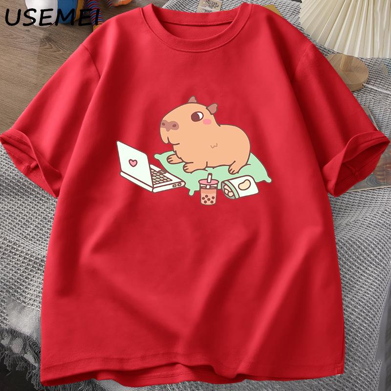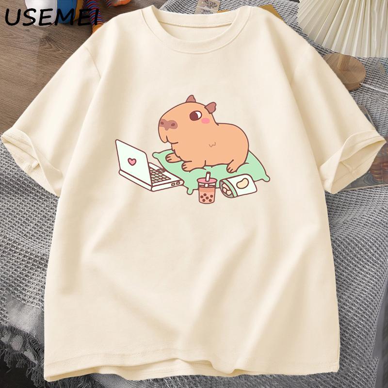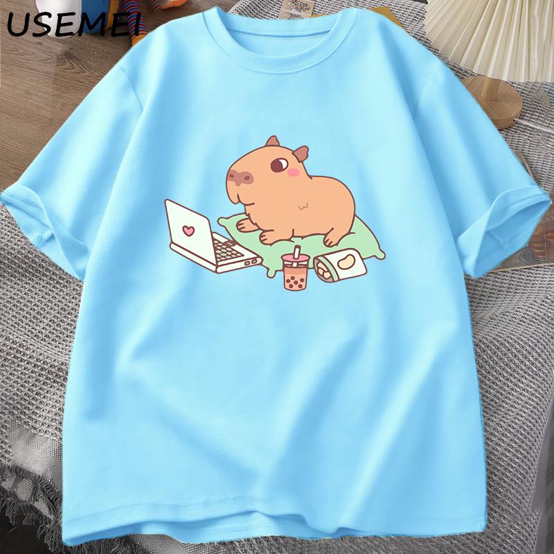 Футболка Capybara Use Computer унисекс, забавные свободные хлопковые топы, повседневная летняя одежда, мягкая футболка большого размера, унисекс, уличная одежда, топ