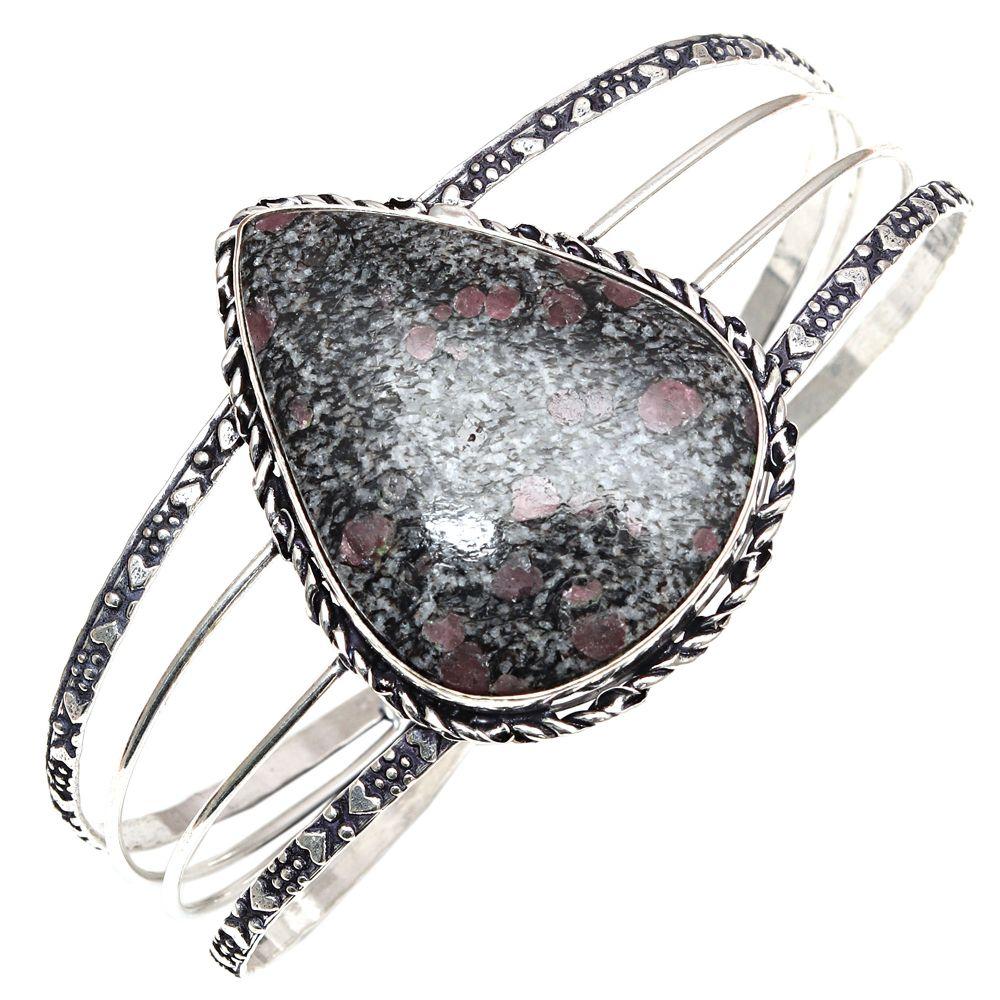 Эвдиалит Яшма Драгоценный Камень Ручной Работы Серебряные Ювелирные Изделия Браслеты-Манжеты 7''Регулируемые