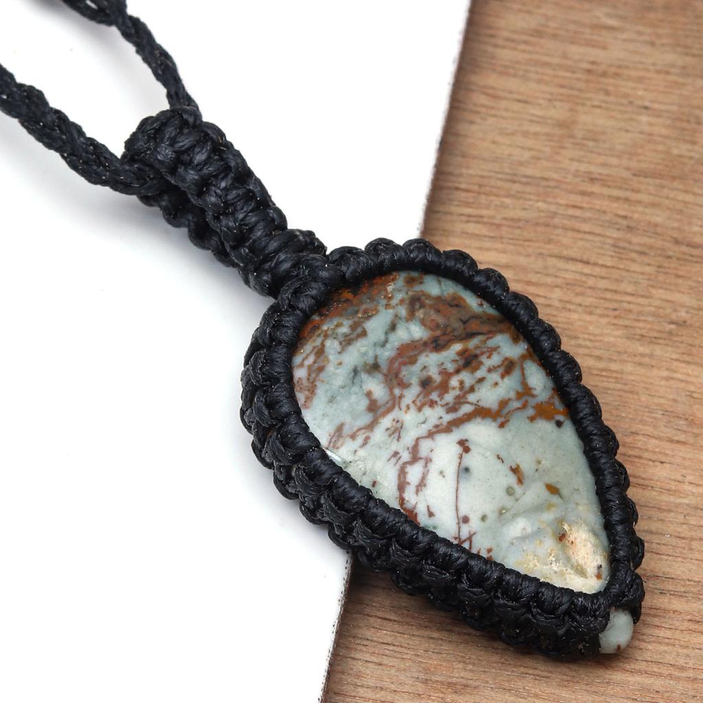Яшма макраме ручная работа ожерелье драгоценные камни ювелирные изделия нить 20-36''реклама кулон