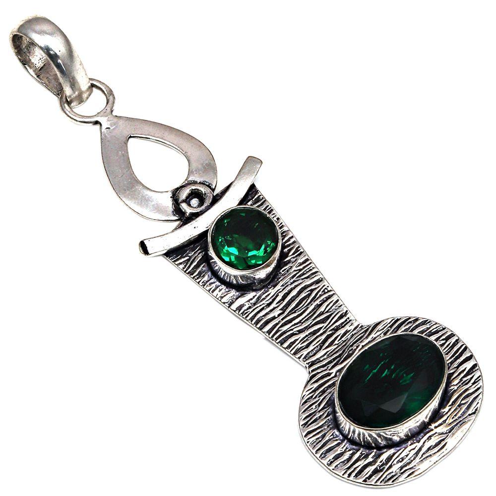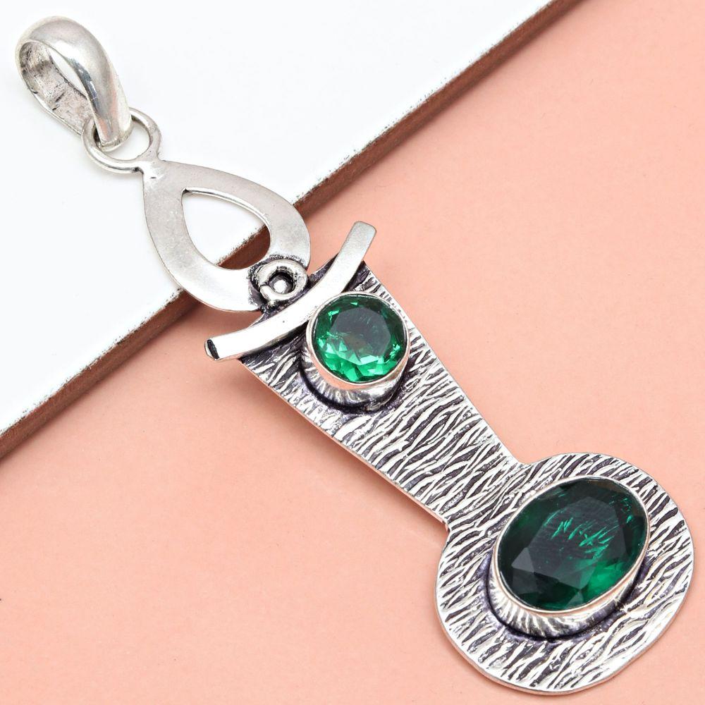 Pendant Emerald Quartz Gemstone Gift For Her Silver Jewelry 3"
