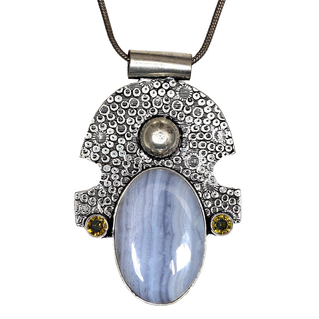 Серебряная подвеска на День матери с синим кружевным агатом и цитрином, 2,5 дюйма