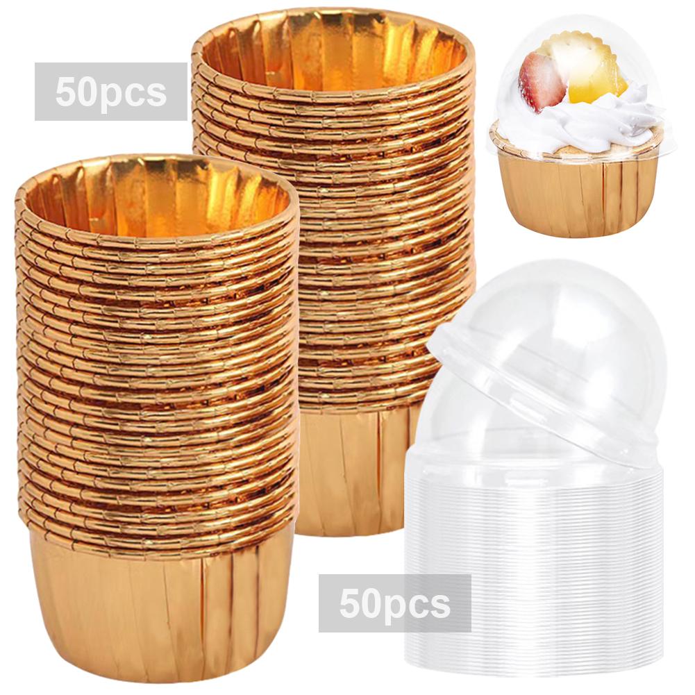 50 Pcs Cupcake Liners Muffin Cupcake Liners Dessert Pudding Ramekin Holders with 50Pcs Lids Disposable Ramekins Muffin Baking Cups for Individual Bakery Wedding Birthday Party