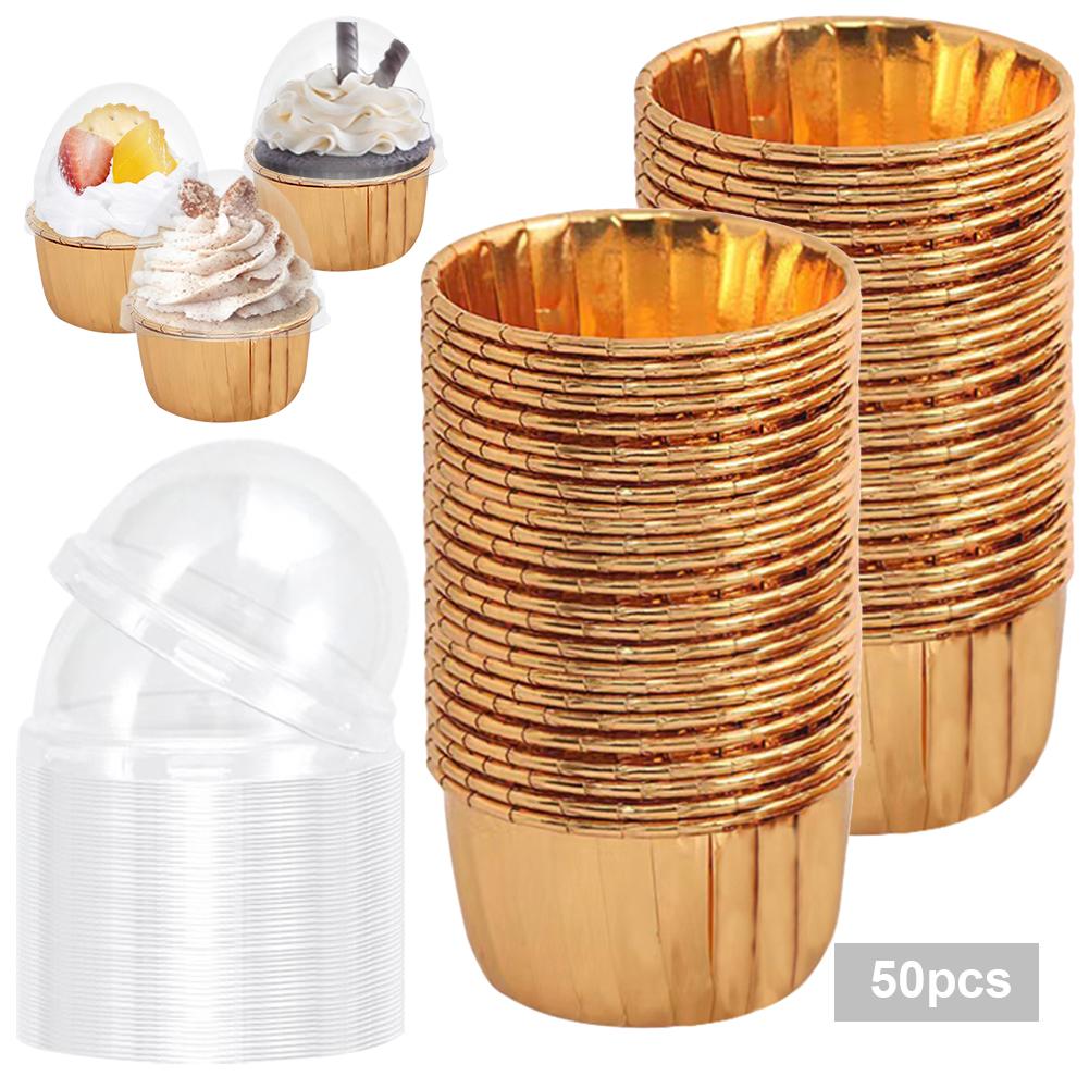 50 шт. формочек для кексов, формочек для маффинов, десертов, пудингов, держателей для формочек с 50 крышками, одноразовые формочки для выпечки кексов для индивидуальной выпечки, свадьбы, дня рождения, вечеринки