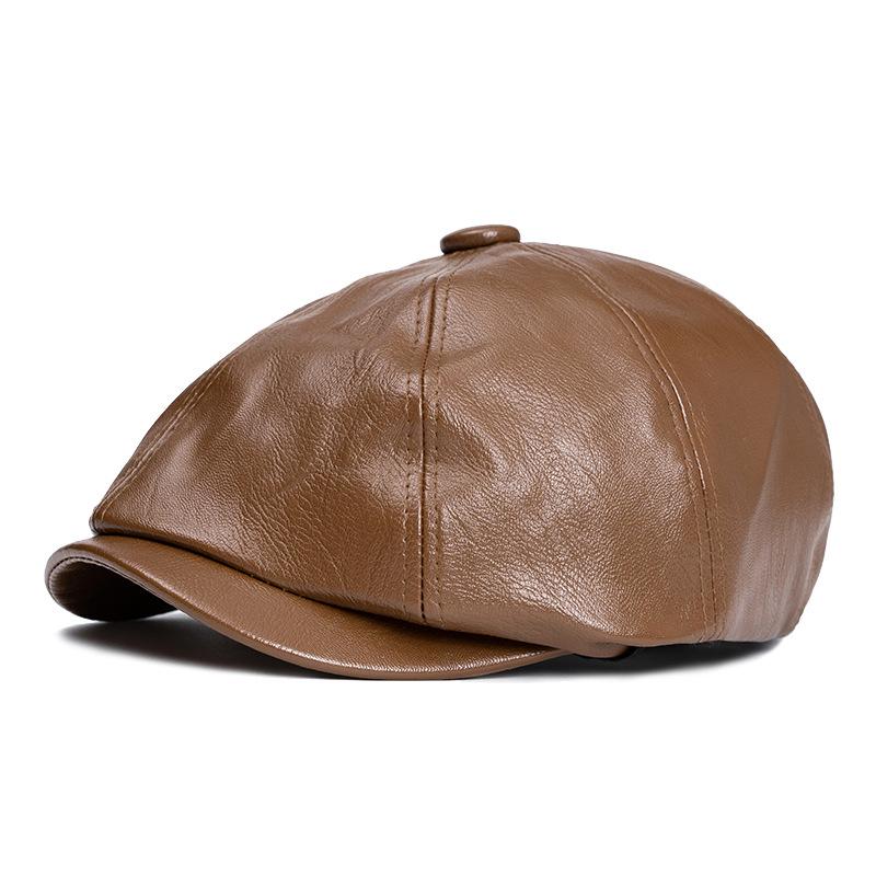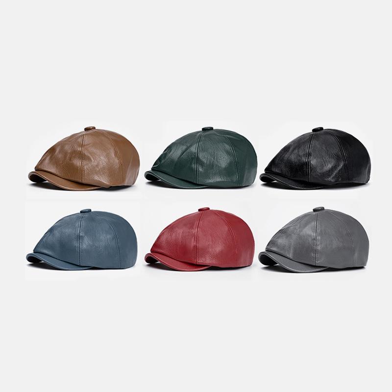 Кожаная восьмиугольная кепка мужская винтажная берет женская теплая прогрессивная кепка кепка газетчика