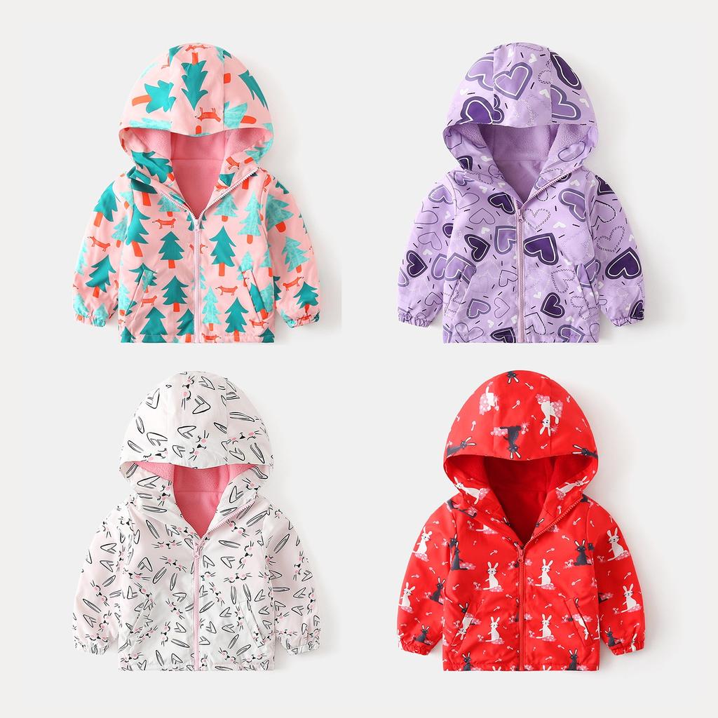 Детские пальто для девочек и мальчиков, ветровка, куртка с капюшоном, детское флисовое водонепроницаемое теплое пальто с милым принтом, верхняя одежда