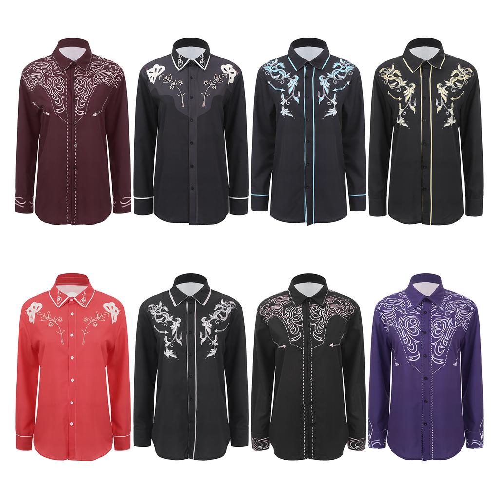 Женская рубашка с длинными рукавами в стиле ретро с принтом, летние повседневные рубашки для отдыха, винтажная пляжная рубашка для ковбойской вечеринки в стиле косплея