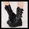 Брендовые модные готические уличные классные женские ботинки на танкетке с пряжками большого размера 43 блестящие розовые толстые мотоциклетные ботинки на платформе женские