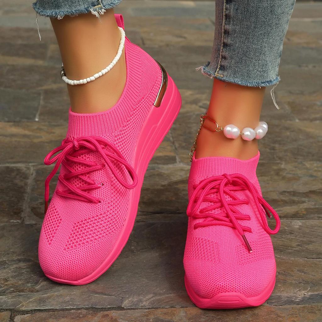 Женские повседневные кроссовки, летняя обувь, женская сетчатая модная дышащая спортивная обувь на шнуровке для женщин, обувь для ходьбы и бега на платформе