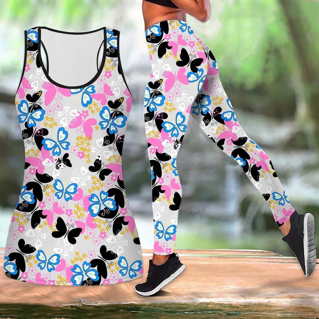 Розовый принт бабочки йога костюм для женщин модные леггинсы для тренировок фитнес спортивный повседневный комплект для йоги спортивный костюм