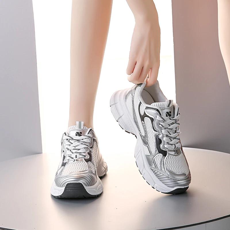 Новые женские роскошные сетчатые дышащие кроссовки на толстой подошве, повседневная спортивная обувь, женская теннисная вулканизированная обувь на толстой подошве