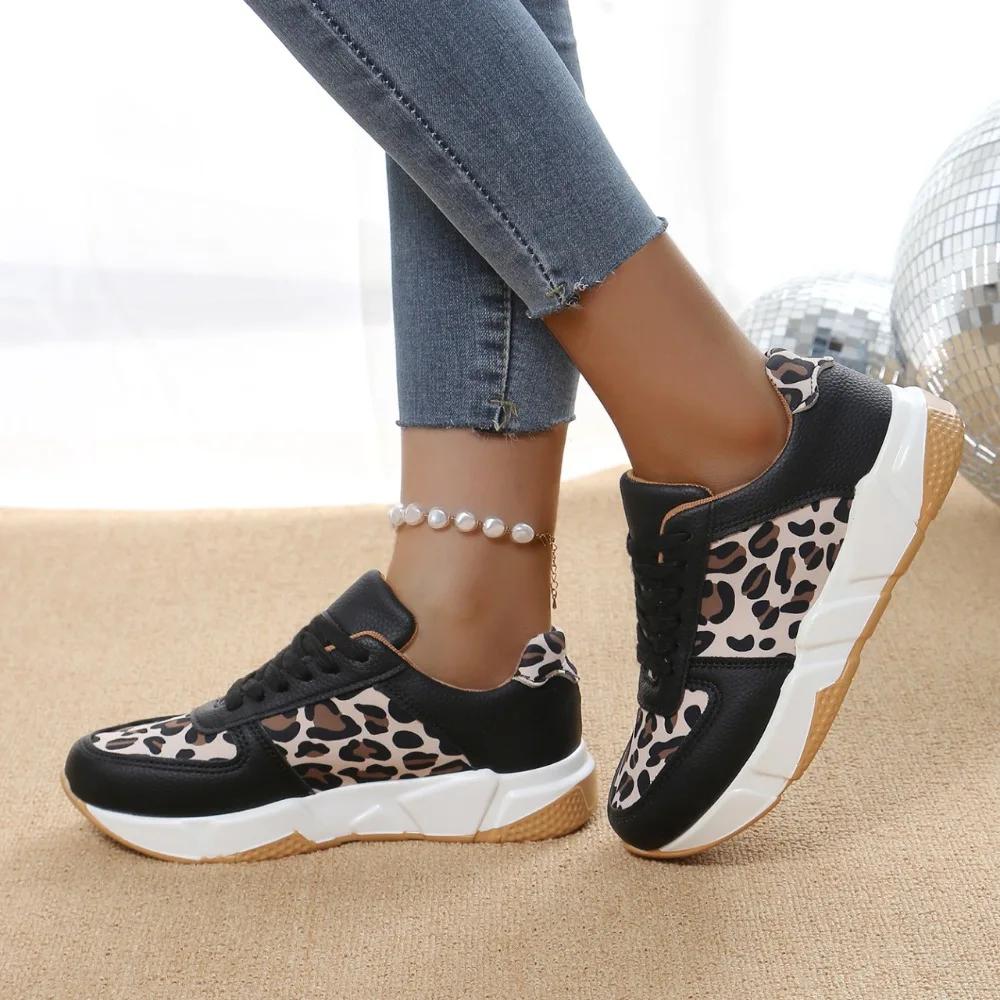 Женские ботильоны, весенняя модная повседневная обувь с леопардовым принтом для женщин, женские кроссовки на платформе, низкие кеды на шнуровке, Tenis Feminino