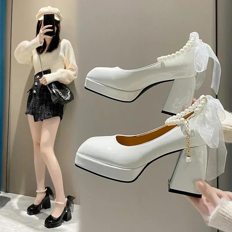 Туфли женские Туфли Мэри Джейн на высоком каблуке Туфли-лодочки Новые женские Туфли на платформе Туфли женские свадебные Невеста Zapatos De Mujer