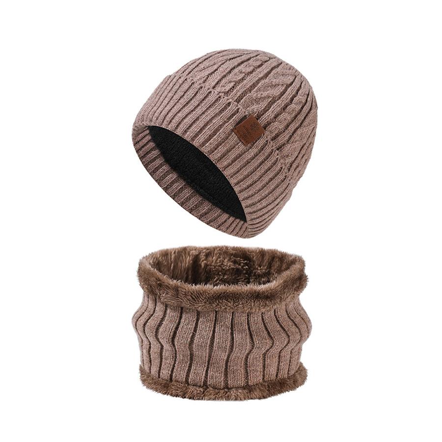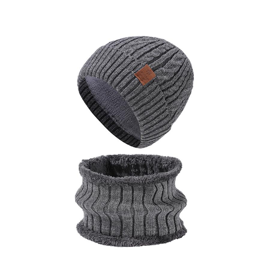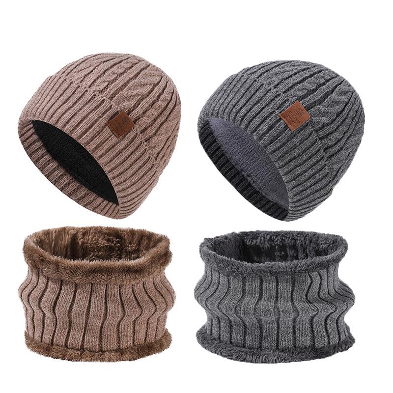Зимняя теплая шапка-шарф, комплект, мужская однотонная бархатная защита ушей, вязаная шапка-рукав