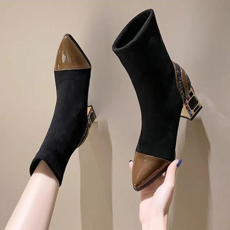 Осенне-зимние модные ботинки Cyber Red в новом стиле, женские универсальные телесные ботинки на грубом каблуке с ромбовидной заплаткой