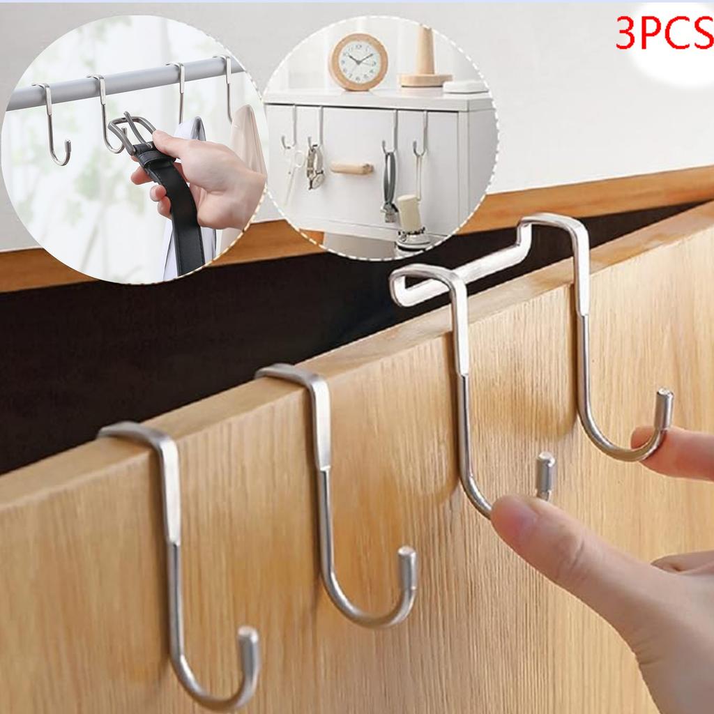 3 шт., крючок для шкафа, двойной S-образный крючок, кухонный металлический, прочный, без перфорации, для задней стенки двери, подвесной органайзер для полотенец