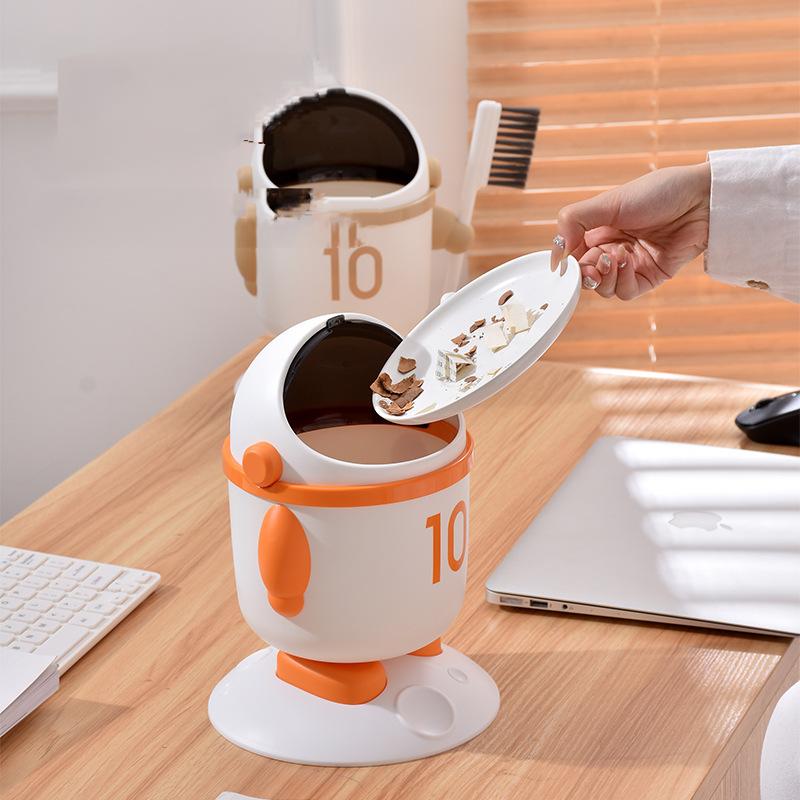 Бытовой пластиковый мусорный бак в форме астронавта с крышкой для офиса, общежития, спальни, милая креативная раскладывающаяся бумажная корзина, сенсорный мусорный бак
